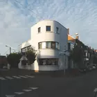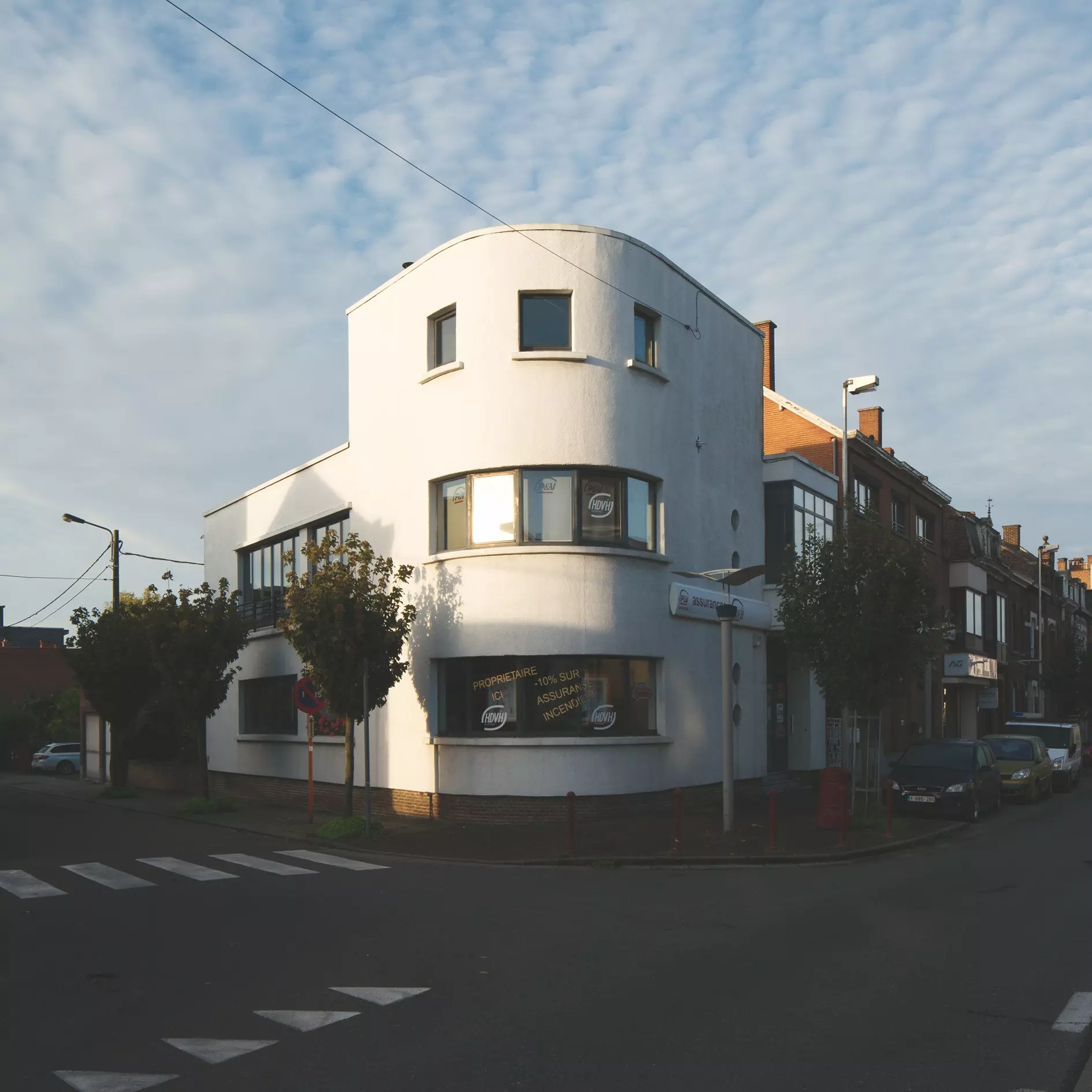 Située à l'angle de deux rues, cette habitation à deux étages s'intègre aisément dans un tissu urbain relativement hétéroclite où les toitures en pente côtoient les toitures plates et où le parement en crépi complète les briques de tradition régionale.