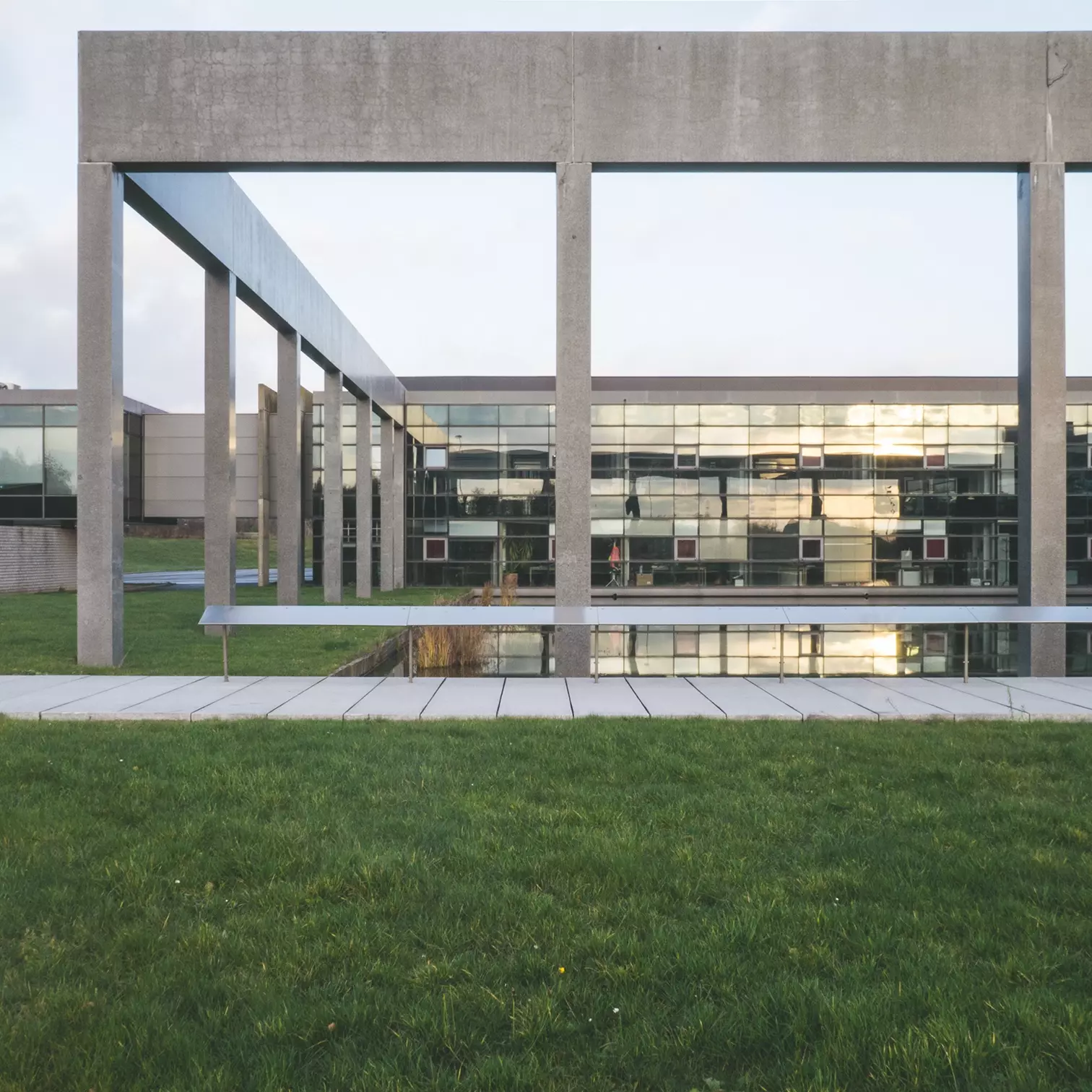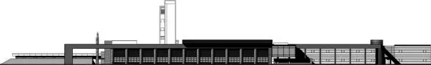 La conception de la caserne accorde la priorité à l'espace du départ en intervention, structurant spatialement les fonctions et circulations – la plupart sur un seul niveau – pour faciliter la rapidité des trajets. Parmi les façades traitées en inox profilé et brossé, matériau choisi pour sa durabilité, trois entités revêtues de noir se détachent : la zone de bureaux accolée à la zone technique et la tour de séchage en béton.