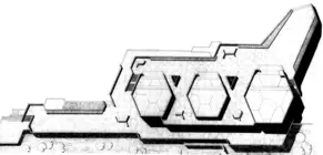 La vue principale qu'offre l'édifice est celle de ses impressionnantes toitures-terrasses dont les zones en surplomb traduisent le volume de chacun des trois amphithéâtres (un de 500 places et deux de 300 places). L'ensemble est complété par des locaux techniques, des espaces de travail (répétitions et séminaires) et des salles de cours qui trouvent place dans l'aile ouest.