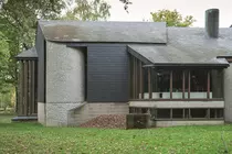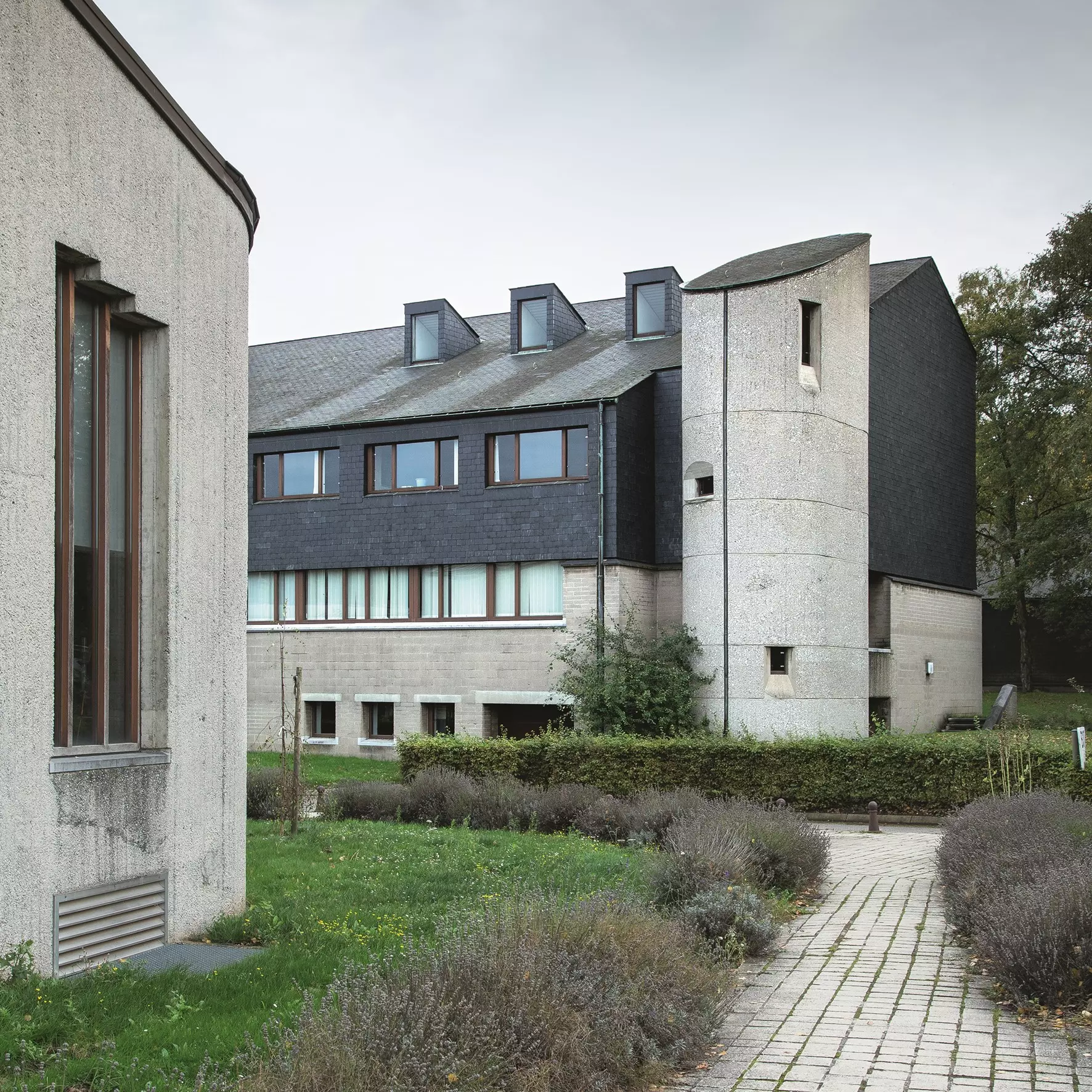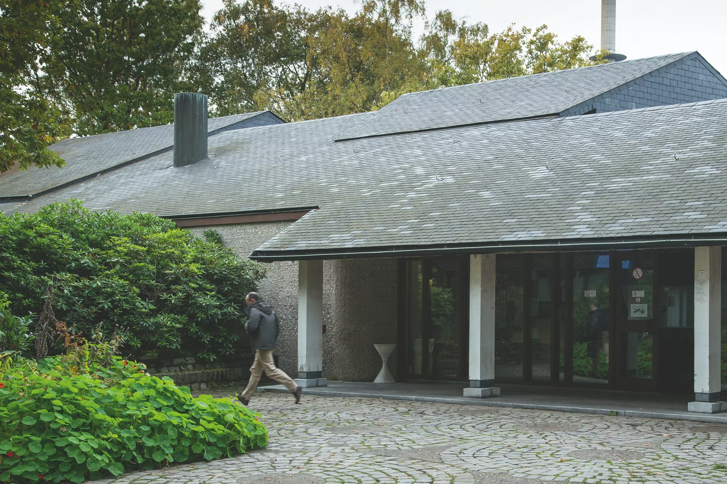 Le béton, encore abondamment présent, se mêle aux ardoises noires à l'extérieur et au bois à l'intérieur pour plus de chaleur. Dans ce projet, Jean Maquet affirme « qu'il n'y a rien qui soit de l'esthétique pure, c'est-à-dire non justifiée ».