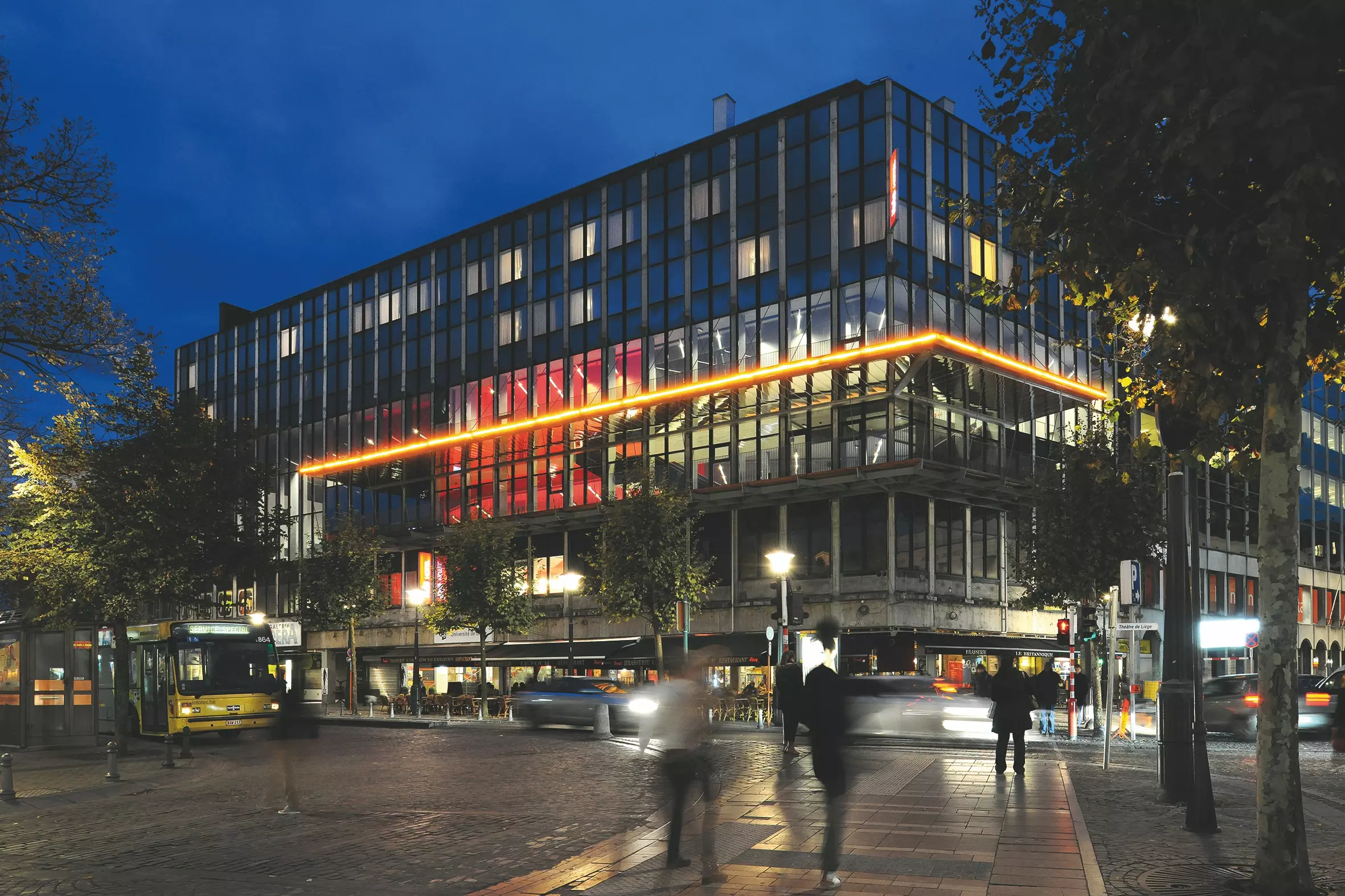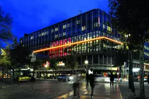 L'architecte a également travaillé à manifester la nouvelle fonction de l'édifice en le réinscrivant dans la ville. Les relations visuelles avec l'extérieur ont été requalifiées par l'ajout des balcons et par le remplacement des vitrages réfléchissants par des vitrages clairs. Depuis la rue, l'animation au sein du bâtiment est perceptible. Les luminaires établis aux plafonds qui sont visibles du dehors participent activement à l'image constructive du complexe ; l'architecte a calculé leur orientation à partir de la trame urbaine induite par les bâtiments voisins de l'îlot Saint-Michel et du Palais de Justice.