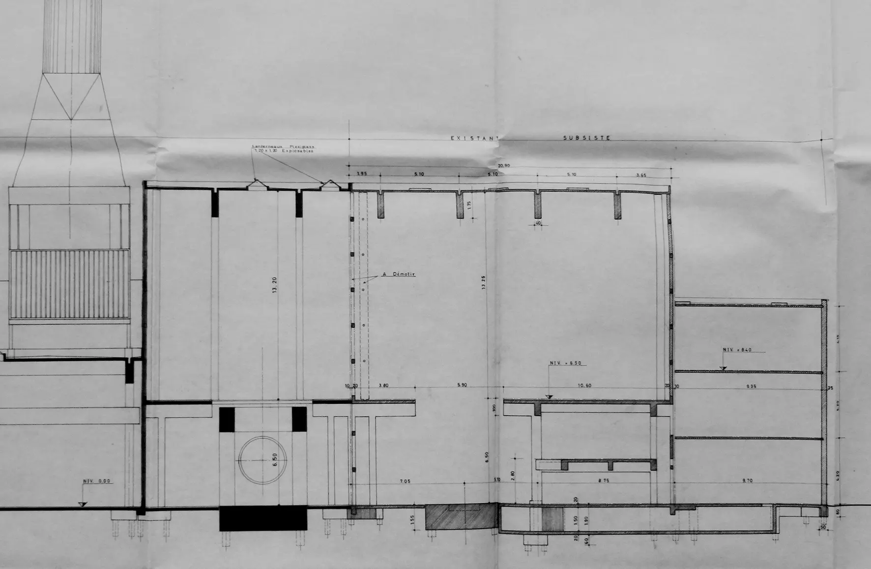 Au sud-est, les façades de blocs Ytong alternant avec des filières de béton armé, sont prolongées, dès 1975, par Jean Gérard en s'inscrivant dans la continuité de l'esthétique existante. Isolée à l'origine, la tour de ventilation en béton rainuré, au nord-ouest, est, aujourd'hui, partiellement masquée par des constructions ultérieures.