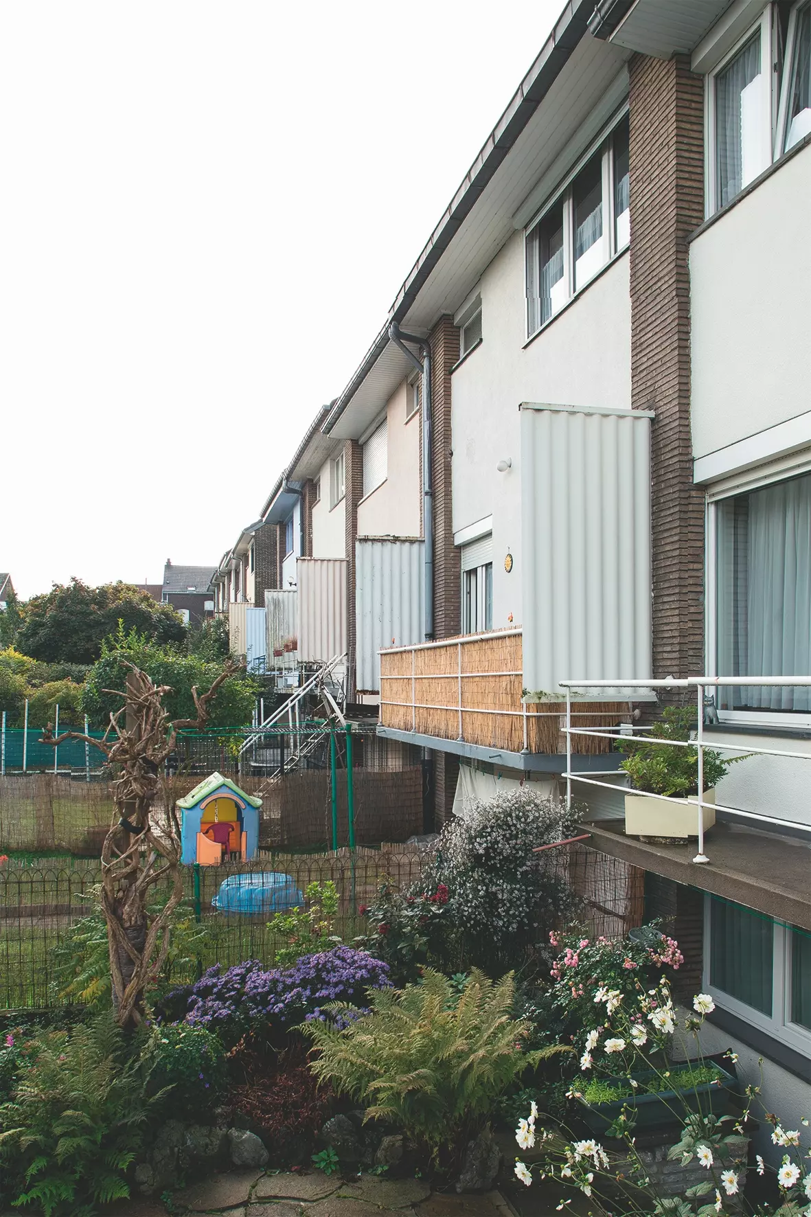On devine déjà la capacité des trois associés à maîtriser la composition urbaine et architecturale, dont le parti résout l'articulation compacte des logements et s'ouvre généreusement vers les espaces de jardin, reliés par de fins escaliers et séparés entre mitoyens par d'élégants claustras métalliques.