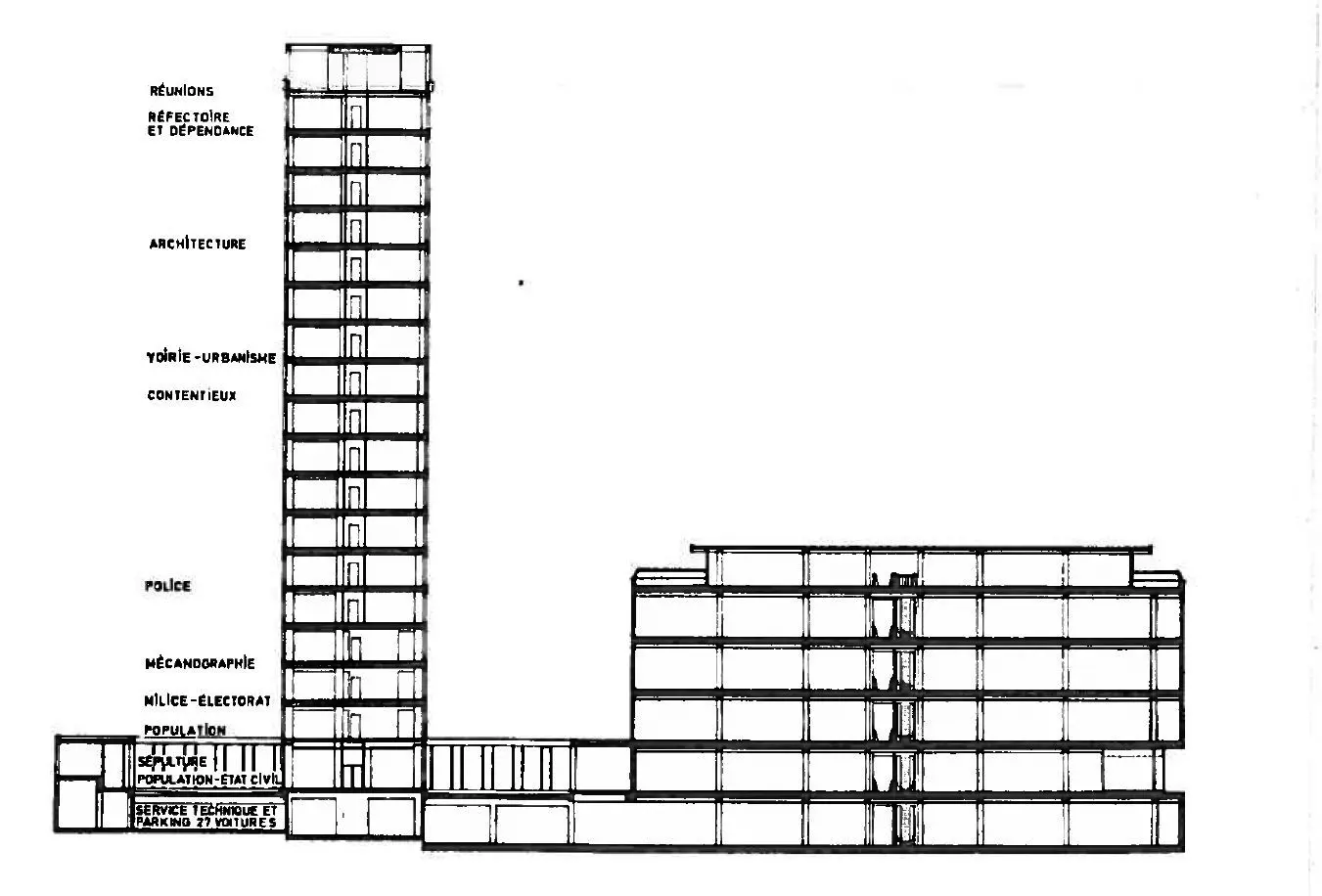 Au début des années 1960, la Ville de Liège entend rationaliser certains services communaux en les concentrant dans un bâtiment unique. Jean Lejeune, échevin des Travaux publics, choisit un vaste espace situé dans le centre historique, bénéficiant d'un plan particulier d'aménagement (1955). Le secteur est proche de la place Saint-Lambert et est accessible facilement par les transports. Le projet se double d'une vaste opération d'assainissement d'une zone considérée par les autorités comme insalubre. Ne disposant pas de moyens financiers suffisants, la Ville s'associe aux Constructions et entreprises industrielles (CEI).