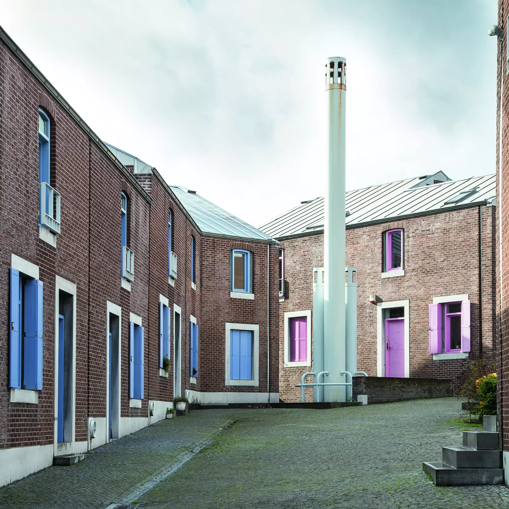 Dans l'ancien quartier de charbonnages du Thier-à-Liège, cet ensemble de trente-neuf logements sociaux résulte d'une opération conjointe de pouvoirs publics, initiative déclinée simultanément ailleurs en Wallonie (notamment à Mons et Namur). Aux articulations de l'implantation, trois immeubles abritent sept appartements, prolongés par trente-deux maisons unifamiliales à deux niveaux, disposant chacune d'une terrasse et d'un jardin privatif, pour une centaine d'habitants au total. Élève de Jean Barthélemy et ancien collaborateur de Charles Vandenhove et René Greisch, l'architecte conçoit un projet que l'on peut considérer comme un manifeste du Nouvel urbanisme, réinterprétant les typologies locales architecturales et urbanistiques. Abritant en sous-sol quarante emplacements de parking, caves et locaux techniques, le complexe est structuré en surface autour d'une rue intérieure qui s'évase vers le haut en placette et s'étiole en venelles. Pierre Arnould accorde une attention particulière à l'inscription de la cité dans le paysage vallonné et verdoyant du quartier, affirmant la volonté d'épouser le site, ainsi que de l'inscrire en harmonie avec le contexte bâti des deux rues, tant dans la volumétrie des immeubles que par l'emploi de matériaux régionaux : brique en terre cuite de Mariembourg, pierre calcaire de Vinalmont, châssis de fenêtre en bois peint (rouge côté sud, bleu côté nord), couverture en alliage de zinc, cuivre et titane. Les abords ont été aménagés juste après la réalisation du premier œuvre, comme pour le mobilier urbain, particulièrement soigné : points d'éclairage, bancs, fontaine.