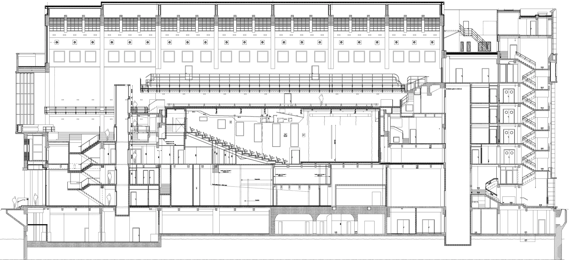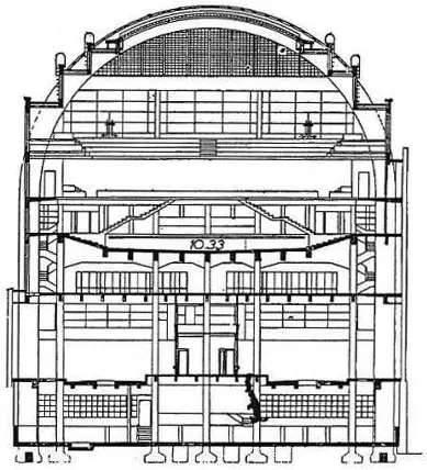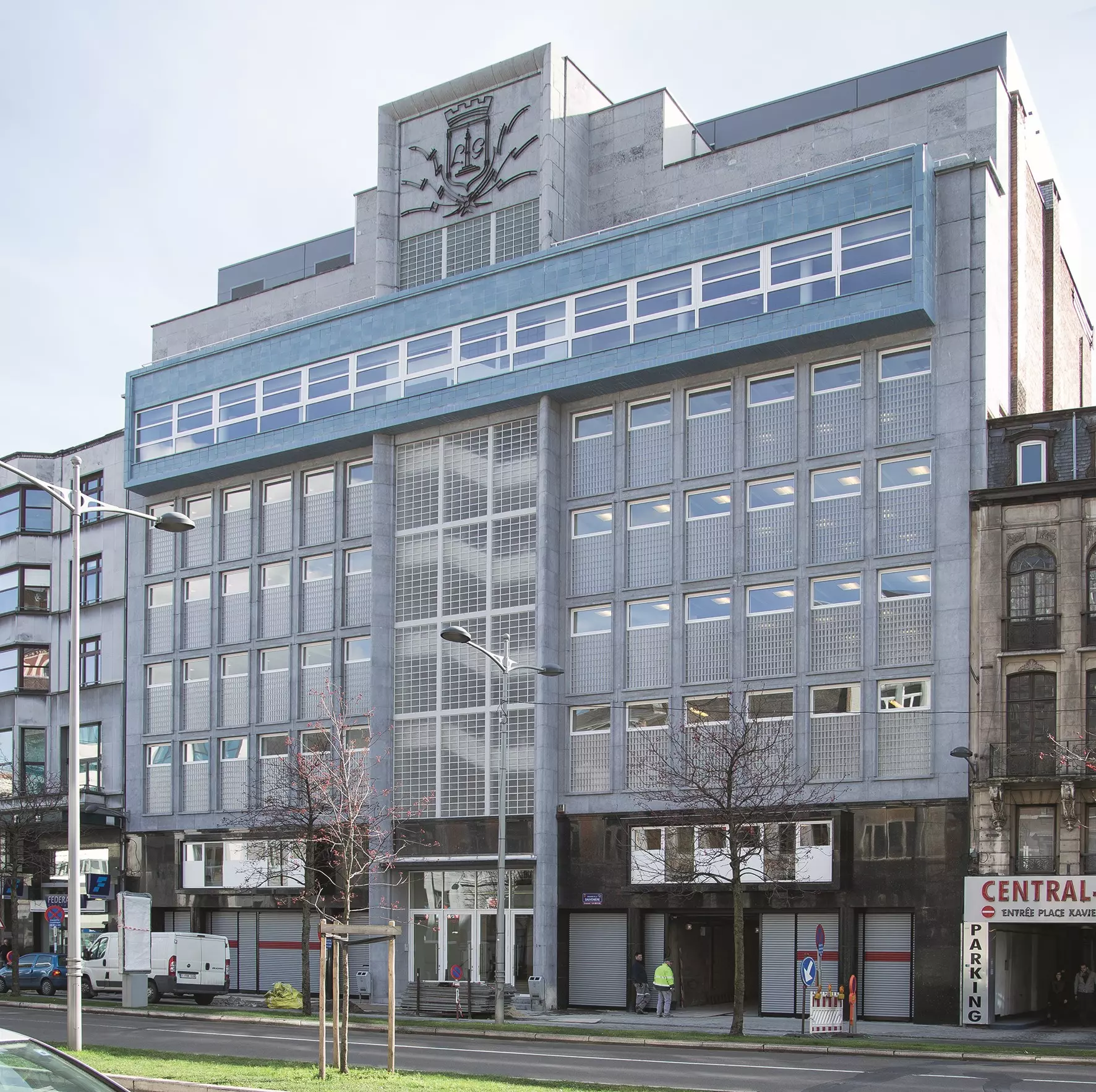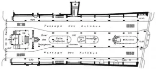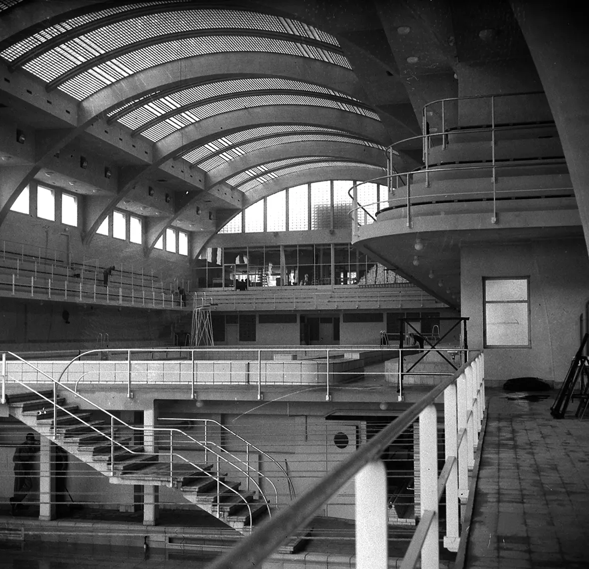 Le bâtiment est achevé en 1941 et inauguré le 2 mai 1942. La gare routière n'est mise en service qu'en 1950. Le complexe, dont l'ossature privilégie le béton armé, comporte une gare routière au rez-de-chaussée, surmontée par un hall de près de 80 m de long abritant les piscines. Il est largement éclairé par une voûte en briques de verre portée par huit arcs en béton armé. Les dégagements et locaux annexes occupent un immeuble de sept étages qui se dresse vers le boulevard. En sous-sol sont logés les installations techniques et un abri antiaérien pour quatre cents personnes.