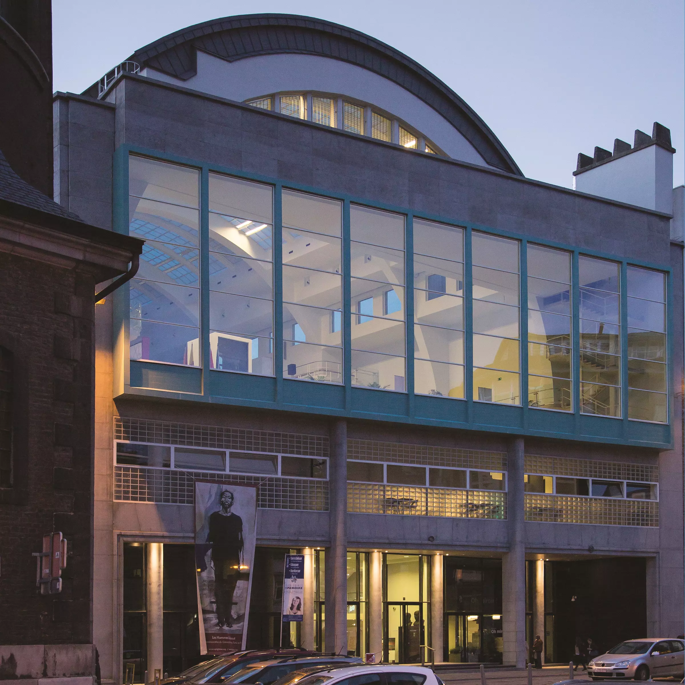 Un concours est organisé. Le programme prévoit notamment, sur un terrain enclavé de 80 m sur 29, la construction d'une gare d'autobus desservant la région liégeoise, de deux bassins de natation et d'un ensemble complet de bains publics. Quarante-neuf projets sont soumis, six sont retenus à l'issue d'une première épreuve. Ils proviennent des architectes Jan Vanhoenacker, Paul Étienne, Merlé, Michel Polak et Georges Dedoyard (qui réalisera également la salle de l'OM à Ougrée). Ce dernier est déclaré lauréat du concours le 18 mai 1937. Entamé l'année suivante, le chantier est retardé par le début de la Seconde Guerre mondiale.