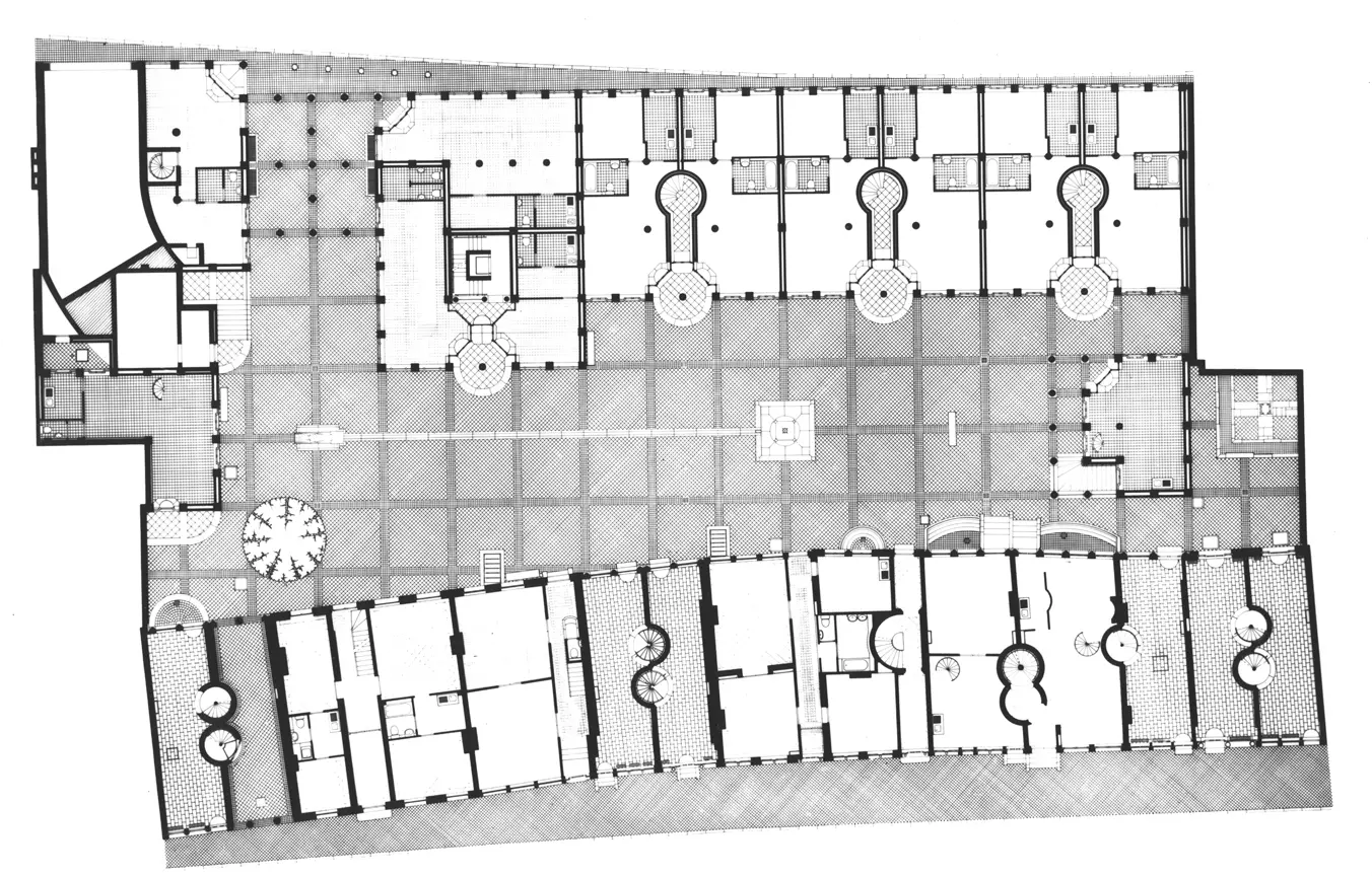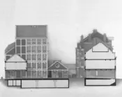 Ce projet constitue la première manifestation publique des recherches sur l'architecture historique menées par Vandenhove à l'époque, également occupé par la réaffectation dans le même esprit de l'hôtel Torrentius (XVIe siècle) où il installe ses bureaux. Il y développe une déclinaison du courant postmoderne, tant dans les formes générales de l'architecture que dans ses détails (fronton, colonnade, chapiteau néo-ionique, fenêtre à meneaux, carreau de couleur, etc.).
