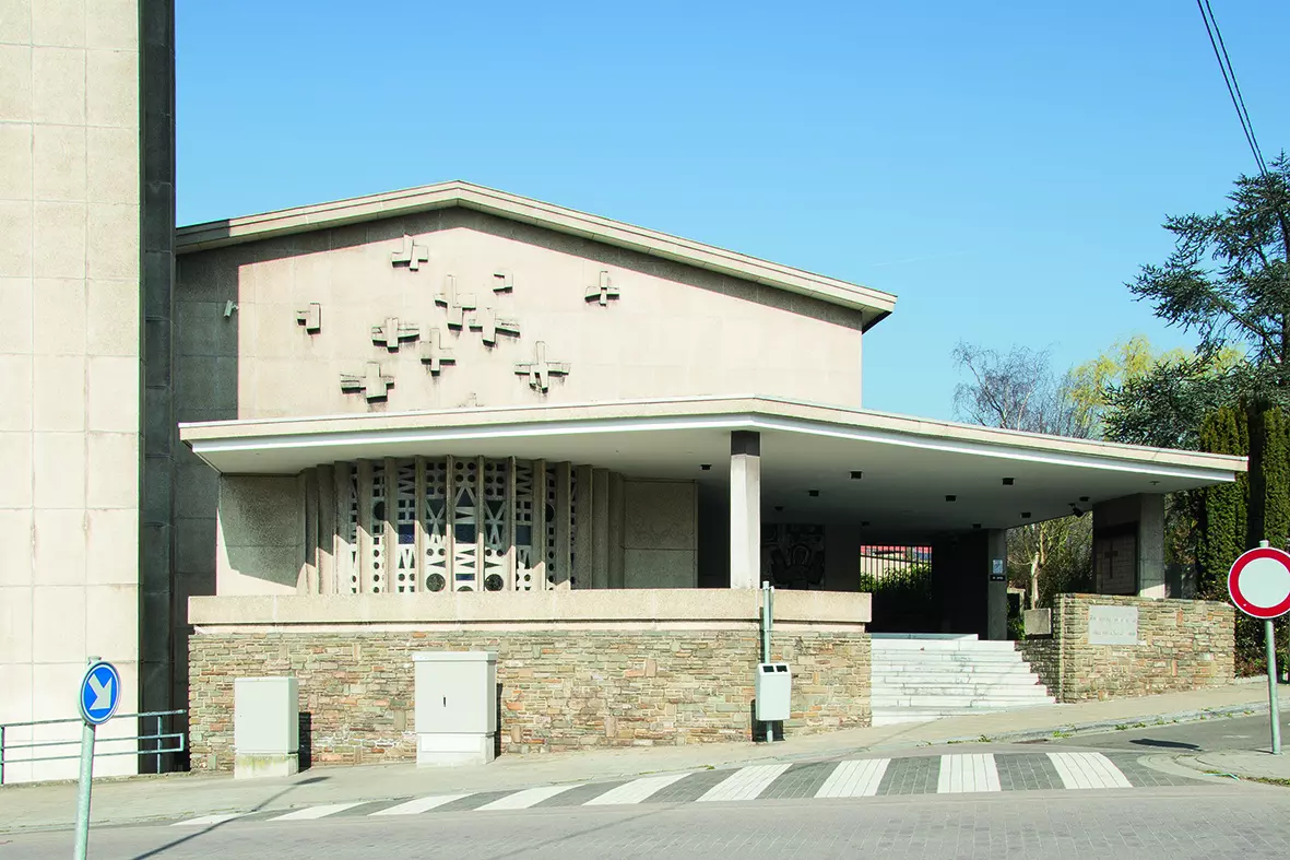 Vingt ans plus tard, grâce à la mobilisation de la communauté paroissiale, l'édifice définitif est mis en chantier. Sa structure principale est en béton, tout comme les dalles qui habillent les façades, au portail expressif.