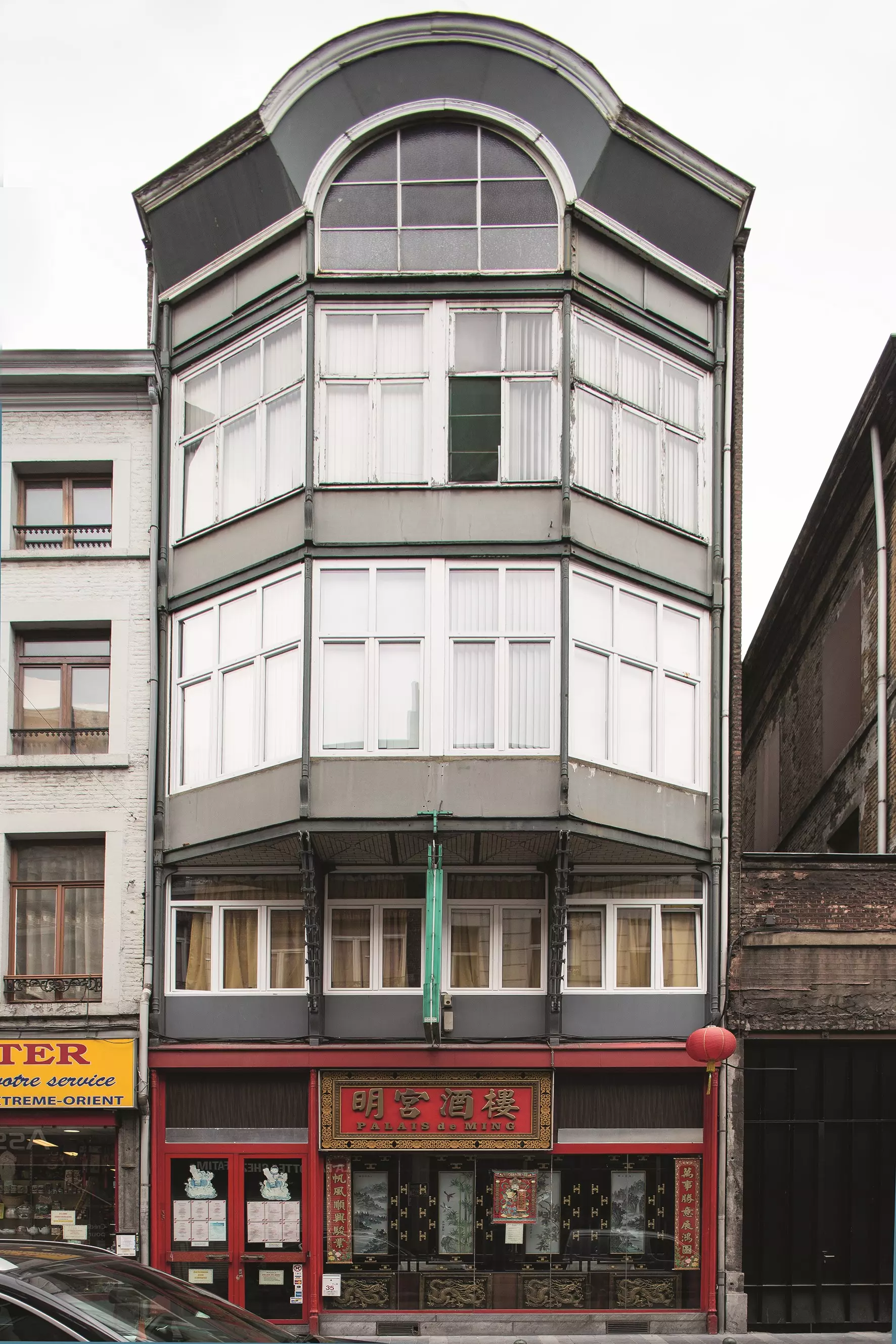 Victor Mallieux, directeur d'une société spécialisée dans la vente d'articles de ménage, de poêlerie, de serrurerie et de meubles de jardin, commande la construction de deux bâtiments eliés entre eux sur deux niveaux, traversant intégralement l'îlot, offrant ainsi entrées et étalages doubles aux chalands. Les deux façades sont d'allure complètement différente : celle de la rue Cathédrale est entièrement structurée de verre et de fer (poutrelles métalliques, dont les rivets sont visibles), tandis que celle de la rue Florimont présente de fortes références au style néo-Renaissance flamande, notamment par l'importance donnée aux lucarnes, tendance stylistique quasi obsessionnelle chez Snyers. L'intérieur des bâtiments est ceinturé d'une galerie périphérique échelonnée sur cinq niveaux et couverte d'un lanterneau.