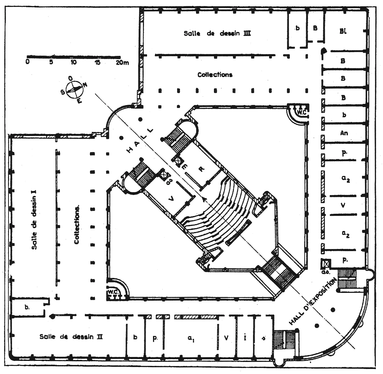 L'ossature est, ici, intégralement en béton armé. Les parements de briques font écho à ceux de l'Institut de chimie, le béton bouchardé à la centrale thermoélectrique. Les verrières convexes des deux halls d'entrée signent l'originalité de l'édifice : celle à l'intérieur du site est spectaculaire, à la jonction des ailes, tandis que, côté Solvay, elle est plus discrète, s'enfonçant dans le coin tronqué de l'angle du carré.