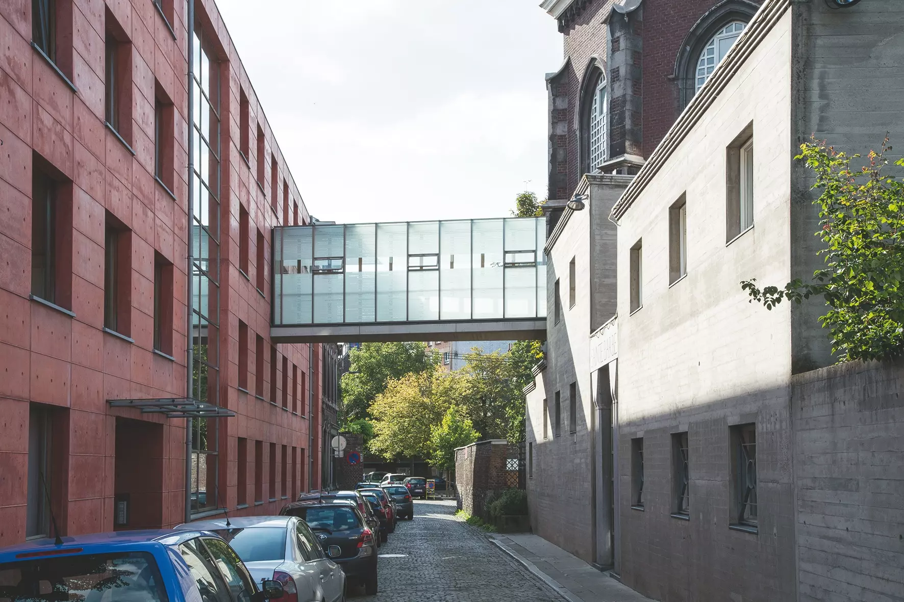Récupérant le site de l'ancien balloir Sainte-Barbe, ouvrage fortifié, le projet tire parti d'un ensemble hétérogène de bâtiments, légués à l'association par la Ville de Liège en 1986. Dans la continuité de la fonction séculaire du complexe, l'institution caritative confie à l'architecte – qui a déjà réalisé son siège à Ans – son aménagement en un lieu d'accueil intergénérationnel, associant maison de retraite (107 lits), crèche (24 enfants), maison d'accueil d'enfants, infrastructures complémentaires (14 appartements) ainsi que l'aménagement de la place Sainte-Barbe (fontaines).