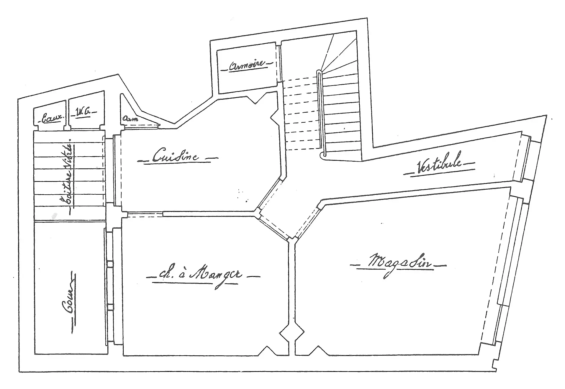 Le traitement de la façade confère à l'habitation sa spécificité. Comme dans les maisons Counet et Meyers (démolie), de la même époque, l'architecte puise dans le répertoire stylistique de l'Art nouveau international, qui unit la linéarité des Écoles viennoise (enduit blanc et décoration en façade, ampleur et supports de la corniche) et écossaise (dessin abstrait de la ferronnerie), et le romantisme nordique (soubassement de la façade en pierre associé à l'enduit aux étages, fenêtres pincées au sommet). La devanture du magasin et les sgraffites originels ont disparu. Au rez-de-chaussée, un vestibule desservait le magasin, une salle à manger et une cuisine ; aux étages supérieurs se trouvaient, dans l'ordre, les chambres et les ateliers du photographe, le commanditaire de la maison.