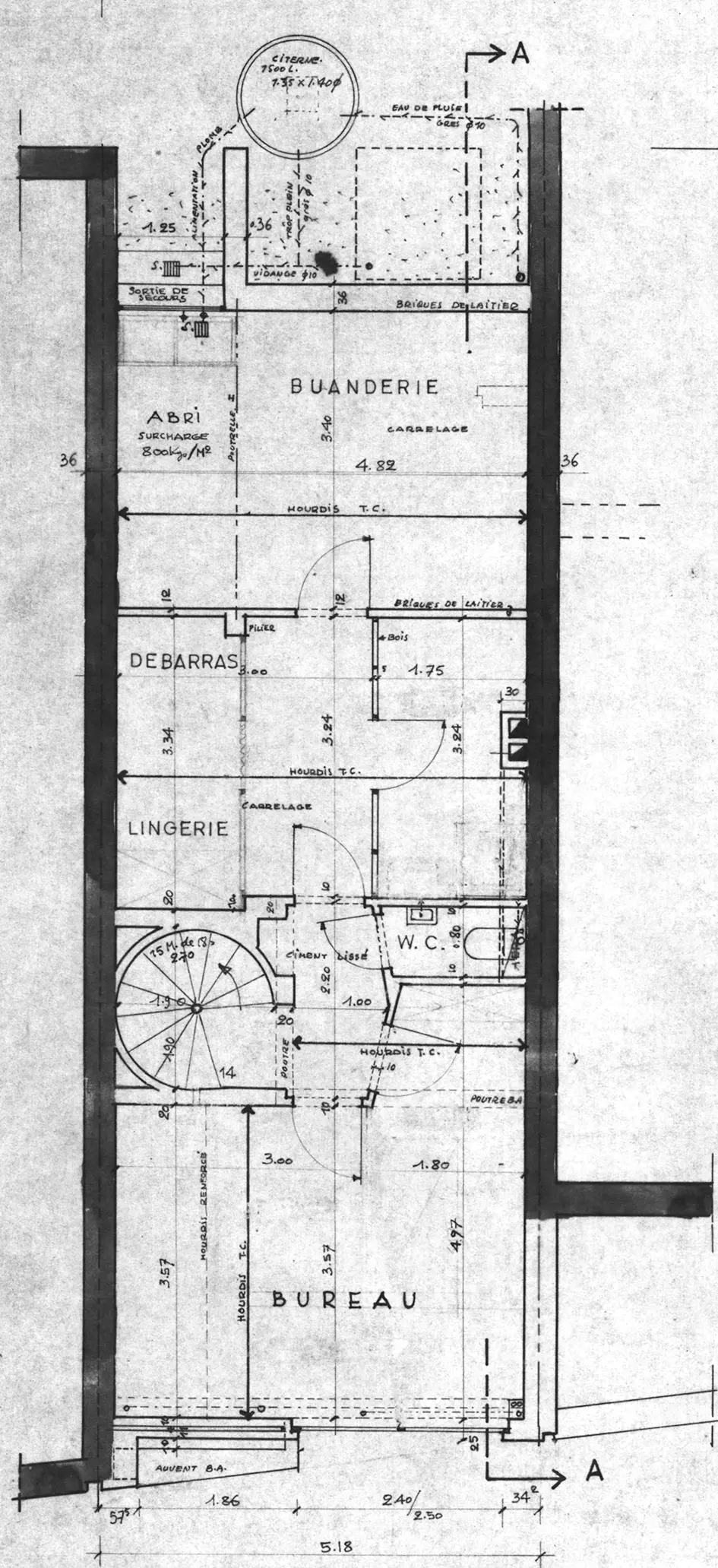 Avenue de Gerlache, en recul derrière un jardinet, elle présente un côté lyrique, avec un mur percé de briques de verre et un auvent en béton prolongeant le raccordement à la cheminée du voisin. L'immeuble Raymond Bureau (1957) qu'il réalise à l'angle des deux rues est traité dans une écriture maîtrisée et plus retenue (1958).