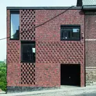 Partie structurante de l'aménagement, elle offre des connexions visuelles entre les différents niveaux. L'appareillage de briques – matériau imposé par le règlement urbanistique – est très travaillé, filtrant les vues depuis l'extérieur.