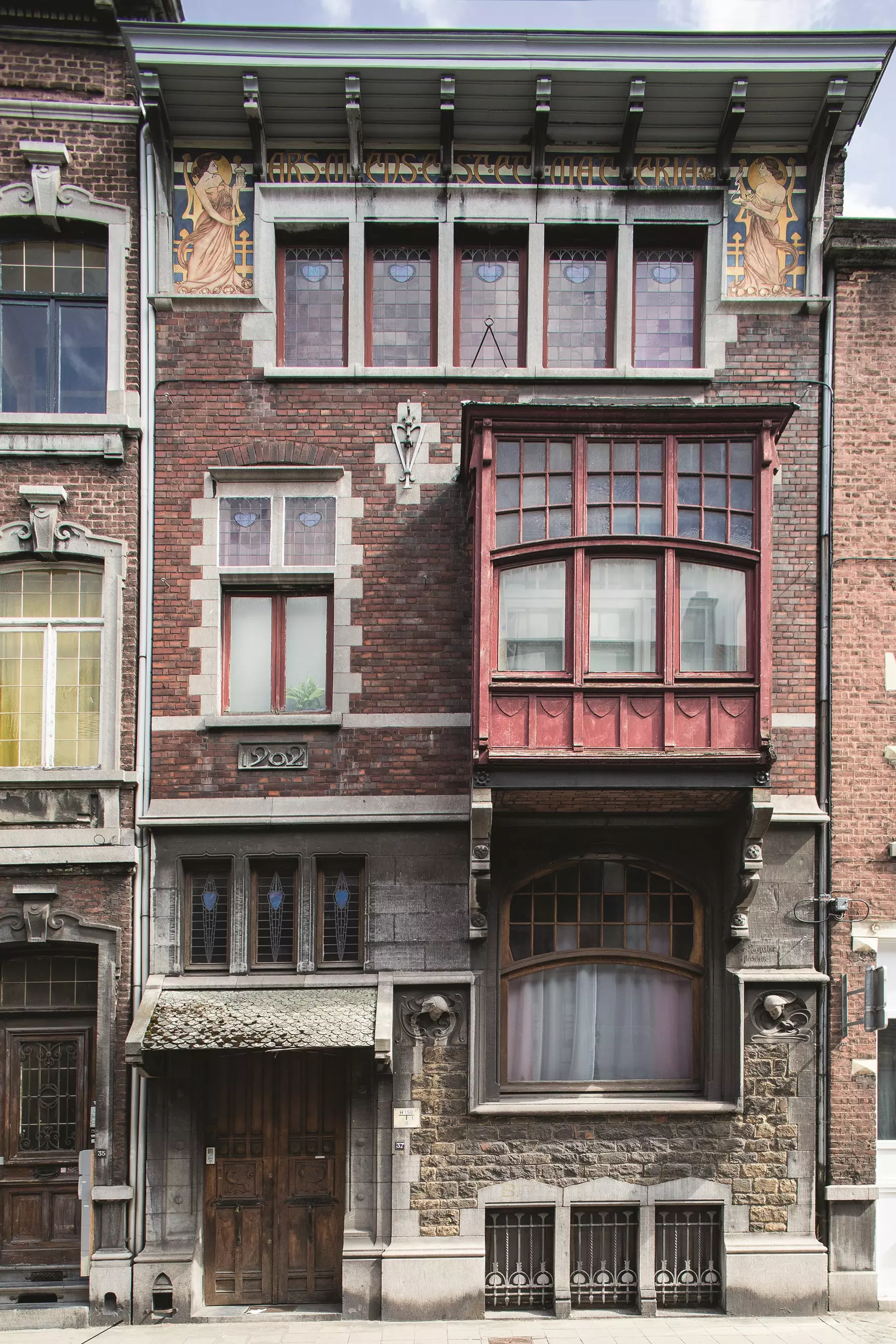 Dans cette maison mitoyenne bâtie pour lui-même, bien insérée dans le contexte de la rue, Victor Rogister maîtrise un langage Art nouveau mûr qui réinterprète les éléments mosans et participe au débat sur l'unité des arts : la façade réunit harmonieusement différents matériaux – brique, pierre, fer, bois, verre – mettant ainsi en valeur le travail de plusieurs corps de métiers et l'œuvre de O. Berchmans (sculptures).