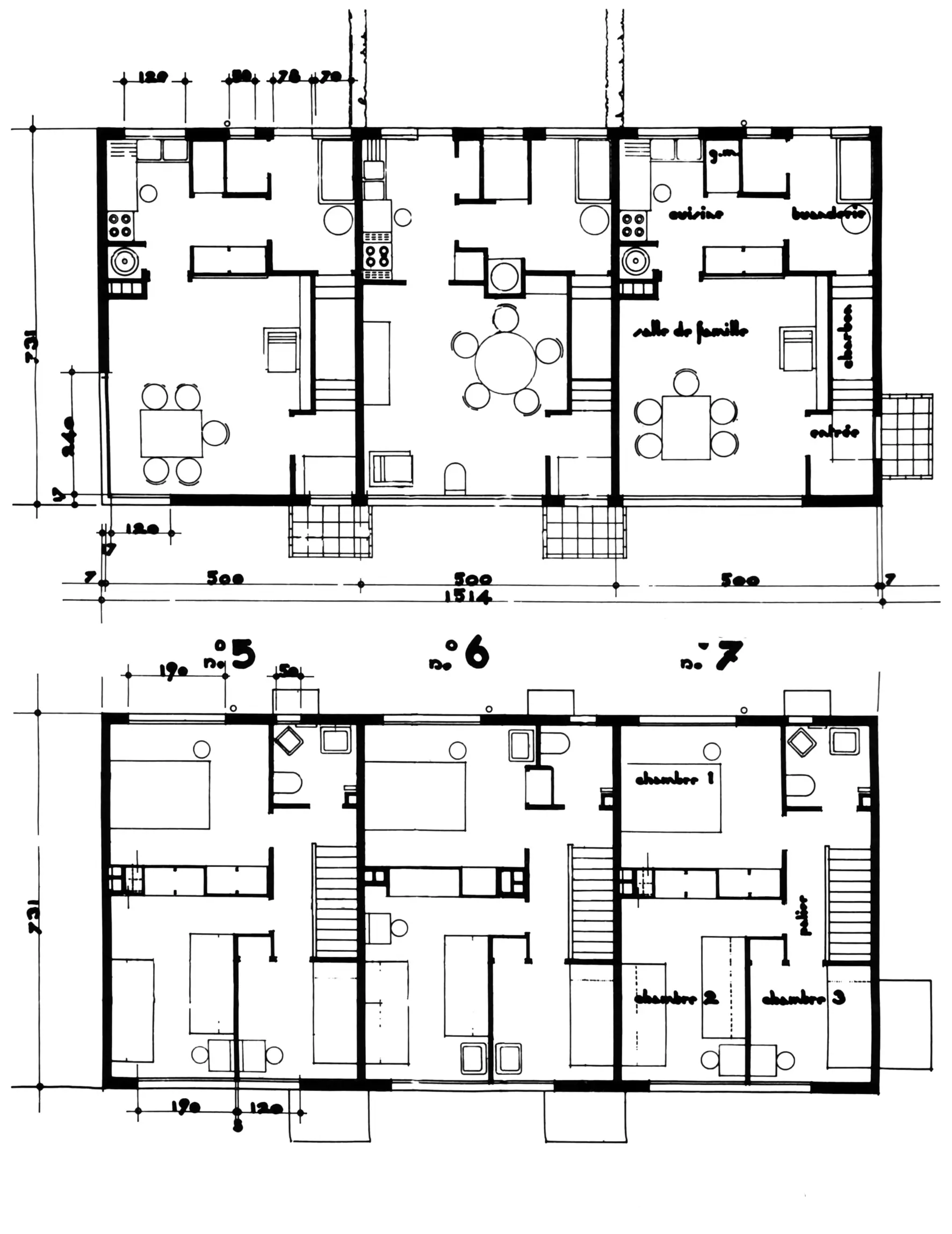 Destinées à des familles de quatre à cinq personnes, ces trois habitations sont équipées selon des standards généralement inaccessibles à la classe ouvrière : chauffage central, salle de bains et cuisine semi-équipée de type pré-Cubex.