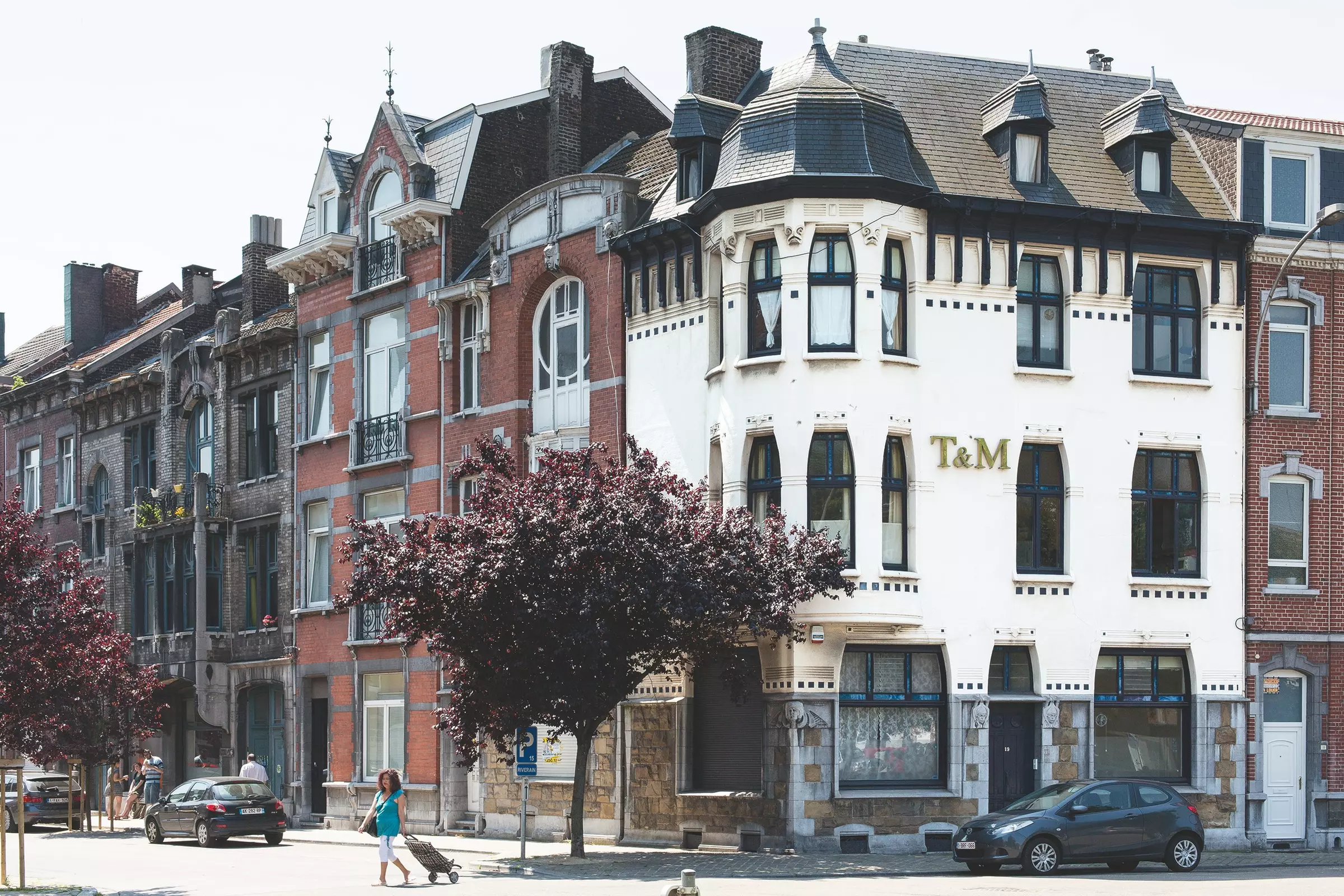 L'immeuble d'angle est le premier d'une série de trois édifices contigus réalisés à la demande d'un entrepreneur. À partir de 1905, Rogister délaisse l'éclectisme, mêlant styles liégeois des XVIe et XVIIe siècles, pour un langage personnel influencé par la Sécession viennoise, toutefois sans réinterpréter le plan traditionnel de l'habitation bourgeoise.
