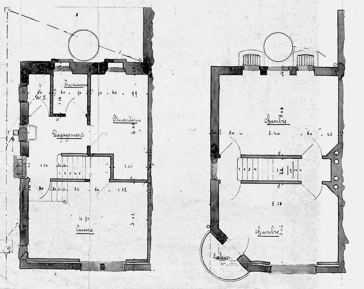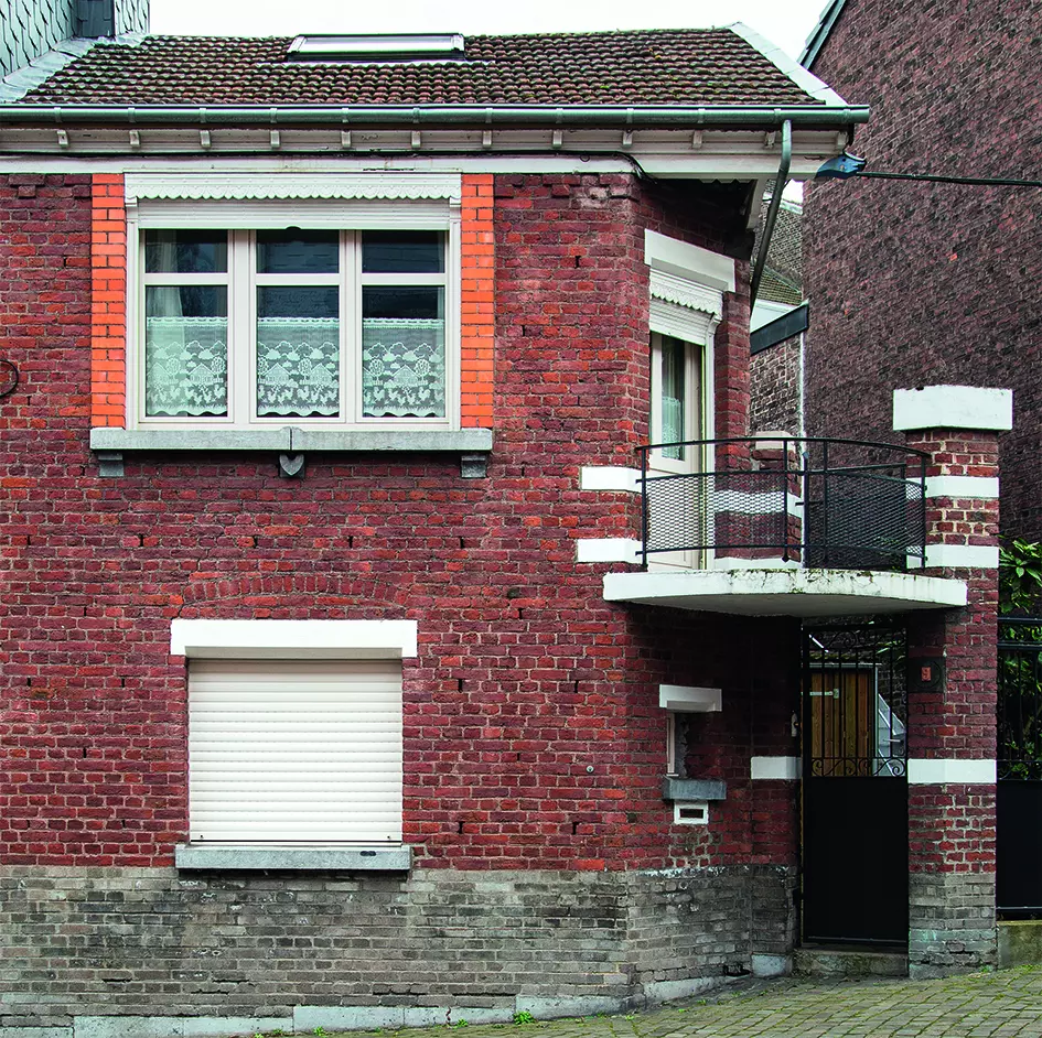 Crise oblige, il obtient quelques dérogations par rapport au règlement communal ; le béton apparaît, par exemple, en façade plutôt que la pierre de taille, en combinaison avec la brique et les moellons ; ce matériau, très prisé par l'architecte pour ses qualités techniques et esthétiques, sert de fil rouge dans sa carrière.
