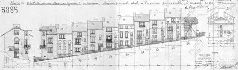 Dans le contexte national de la pénurie de logements, Clément Pirnay signe les plans, pour la Société liégeoise des maisons ouvrières, de la plupart des maisons de la rue des Acacias, alignées sur la forte pente de la rue.