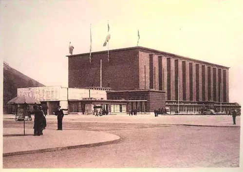 Avec la plaine de jeux reine Astrid, le palais est le seul bâtiment pérenne de l'Exposition de 1939. Architecte en chef de la Ville depuis 1936, Moutschen est alors âgé de 32 ans et déjà l'auteur d'une œuvre magistrale, le lycée de Waha.