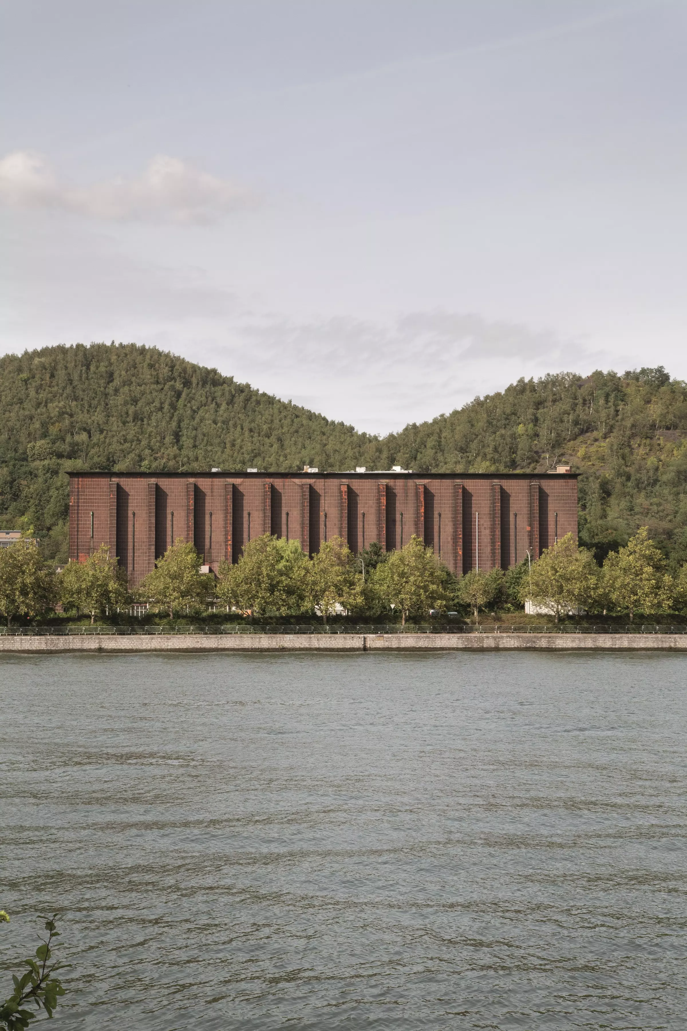 La fonctionnalité prime dans la conception du bâtiment, dont l'austérité est tempérée par le revêtement en plaques de terre cuite, suivant une gradation de couleur allant du violet foncé au rouge clair et, comme au lycée de Waha, en recourant aux collaborations d'artistes – depuis son entrée en fonction, l'architecte est un promoteur du rapprochement entre architecture et arts plastiques dans les bâtiments publics.