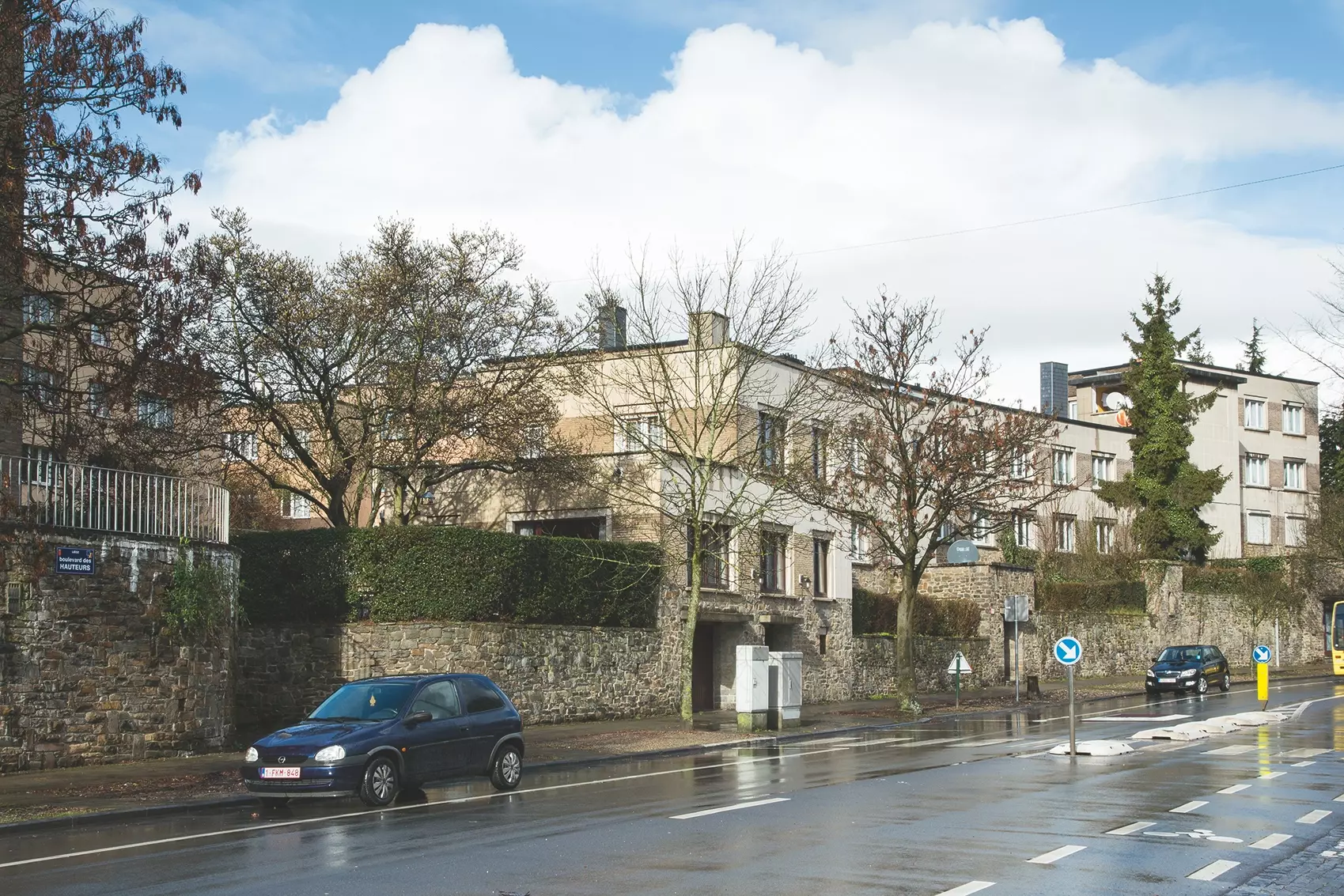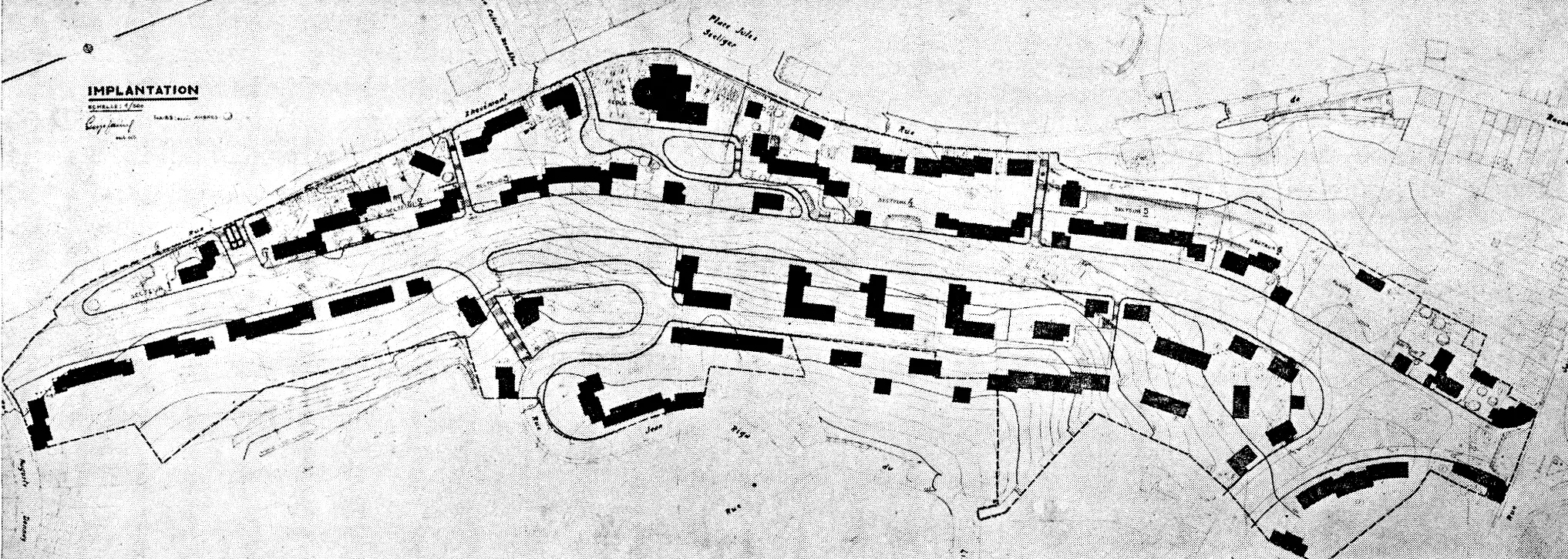 L'architecte joue habilement du site, proposant de densifier raisonnablement ces anciens terrains miniers, de maintenir les arbres importants et d'intégrer la chapelle existante. Le traitement de l'implantation et sa formalisation sont remarquables, créant le long du boulevard des Hauteurs – première phase de construction, la plus intéressante – des échappées visuelles renouvelées, usant de dispositifs et d'aménagements paysagers multiples : murets, soubassements, portique, escaliers, terrasses. L'image unitaire du quartier, bien qu'altérée par des rénovations sans lien avec le contexte, est encore perceptible.