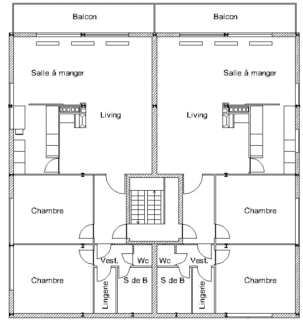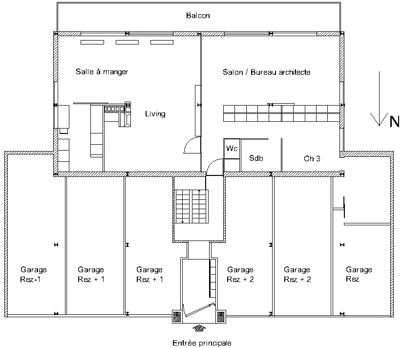 Cette réalisation est un modèle de rationalité constructive et d'efficacité organisationnelle. Le bâtiment isolé s'inscrit dans la pente du terrain : trois niveaux à rue, quatre sur jardin plein sud. Le plan carré distribue les appartements suivant un dispositif croisé : quatre traversant et deux sur jardin, en butée sur les caves et les garages à rue ; un plan symétrique, l'escalier au centre, la vie commune sur terrasse au sud.