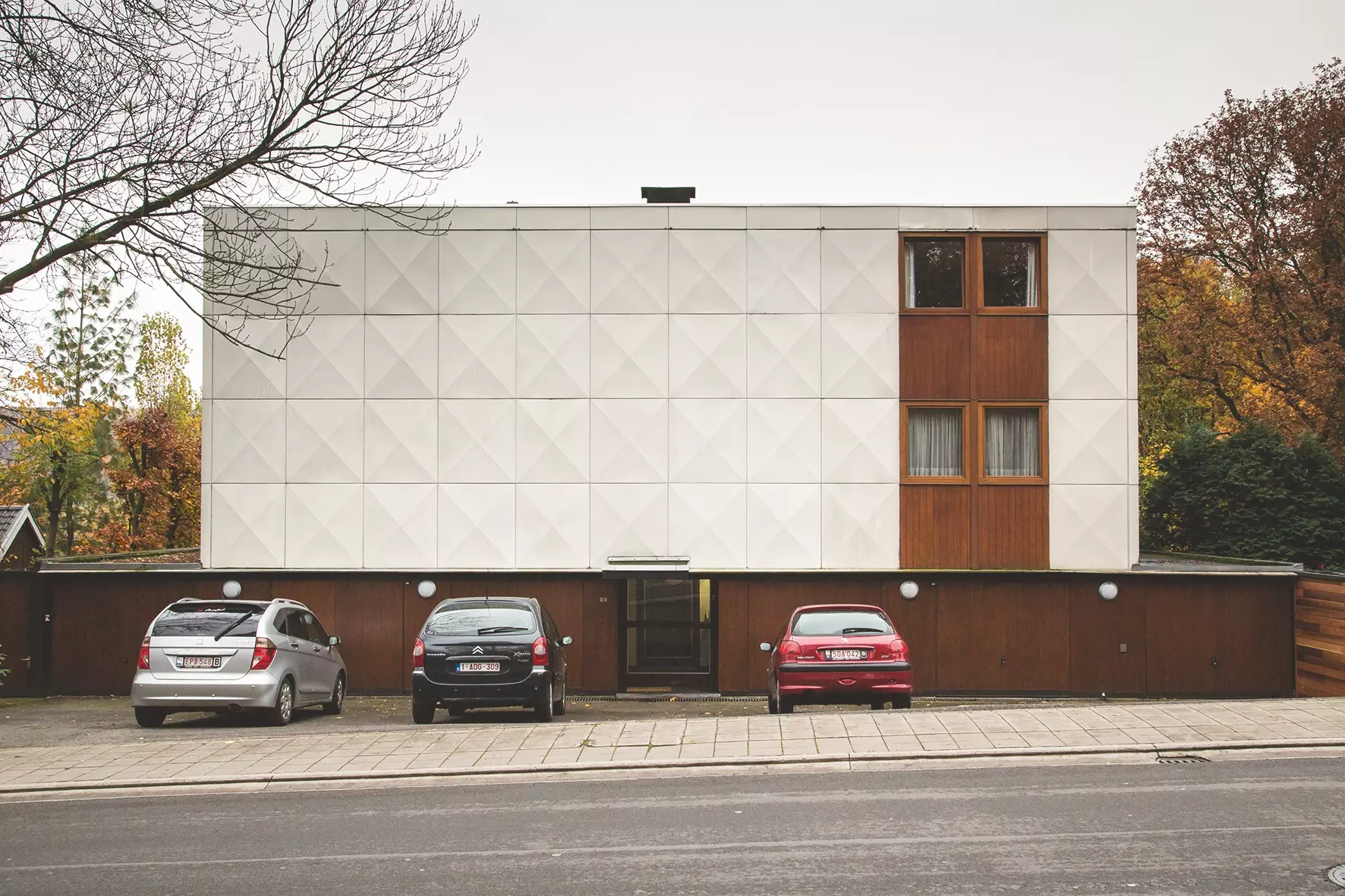 Depuis la rue, un parvis met en scène une grande villa : un socle en bois marqué par l'auvent d'une entrée axiale et le bel-étage enveloppé dans une peau soyeuse en ronde-bosse. Pourtant cette figure résulte d'un plan flexible aux critères strictement pragmatiques. Ce système peut générer une typologie. On le voit bien se disperser et initier un plan-masse aux formes analogues et variées.