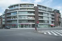 Chaque appartement dispose d'un grand confort grâce à la performance de l'isolation, l'ingéniosité des communications verticales, la facilité d'entretien des vitrages et la profondeur des terrasses. L'écriture est sobre, le contraste des matériaux (brique et aluminium) et la forme courbe de l'immeuble offrant à eux seuls un impact visuel positif à cet espace resté longtemps sans affectation.