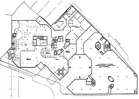 Sur une trame structurelle en béton, les espaces de bureaux sont articulés autour d'un plan hélicoïdal en forme d'escargot, dégageant le patio intérieur piétonnier. En recul de l'Opéra et dégageant la vue sur les toitures de la collégiale Saint-Jean l'Évangéliste (XVIIIe siècle), la composition dialogue avec la colline du Publémont, dont elle rappelle, par mimétisme, les courbes et jardins, interprétés en terrasses.