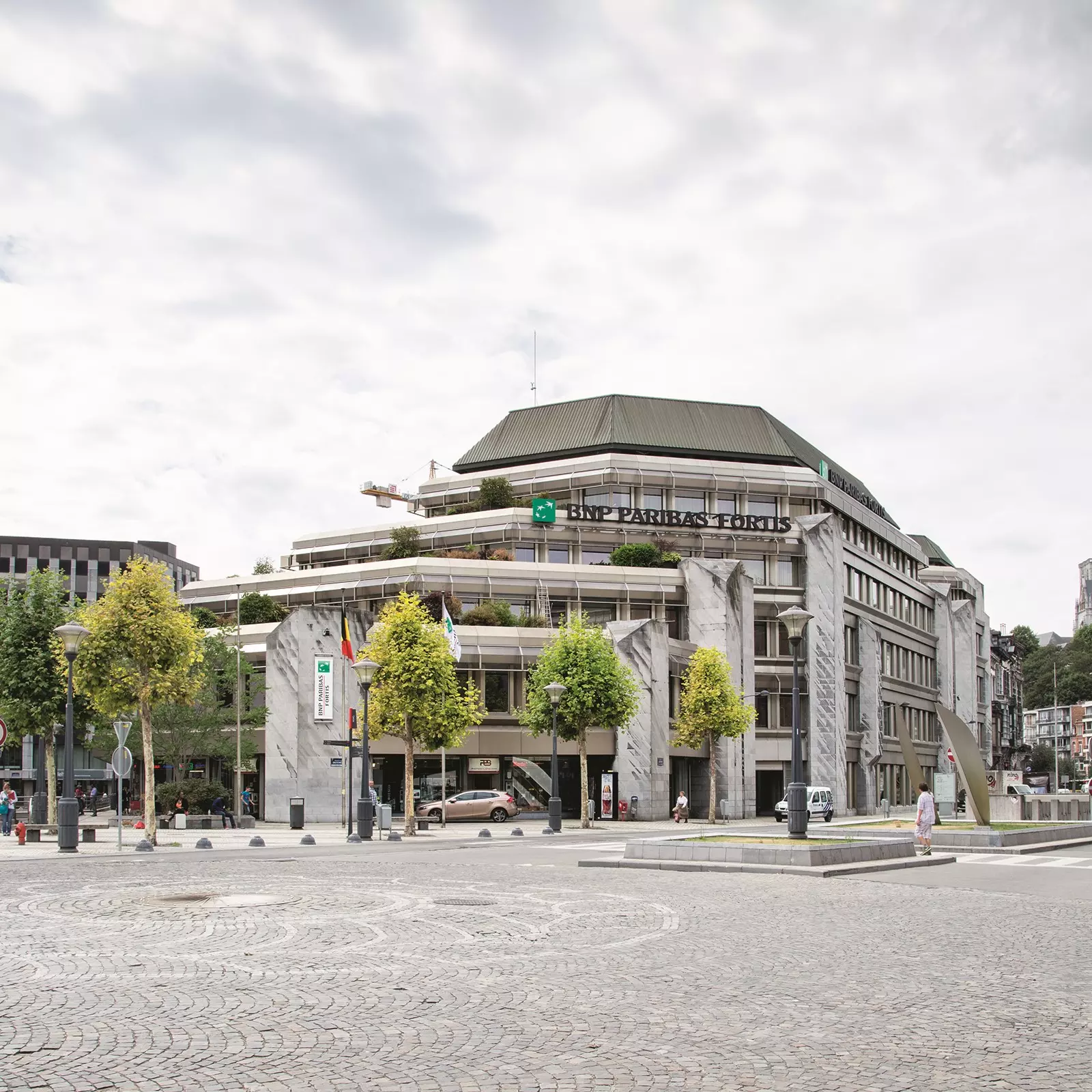 Le bâtiment remplace un ensemble néoclassique contemporain du Théâtre royal et l'ancien siège de la Société Générale, réalisation monumentale de Georges Dedoyard (1937), dont la sauvegarde sera réclamée, en vain, par l'Association royale des architectes de Liège (1980).