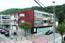 À proximité de la cité construite pour les sinistrés par les mêmes architectes, le programme est révélateur d'une démarche exemplaire où la mixité des usages est valorisée dans un parti clair, une rationalité de la composition et une expression architecturale originale. Au rez-de-chaussée sont situés les commerces et, aux deux niveaux supérieurs, quatre logements et le bureau du gérant de la coopérative.