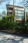 La façade sud est complètement vitrée pour offrir un maximum de vue et d'ensoleillement. Les matériaux utilisés s'incorporent au cadre et permettent un minimum de déperdition. Ainsi, les murs extérieurs sont construits à l'aide de blocs de bois agglomérés au ciment.