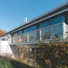 Son implantation, en parallèle et en contrebas de la chaussée, laisse l'avant-jardin créer une barrière de protection contre la voirie très fréquentée. S'opère ainsi une rupture avec l'espace public, que contrebalance l'enchaînement fluide des espaces intérieurs.