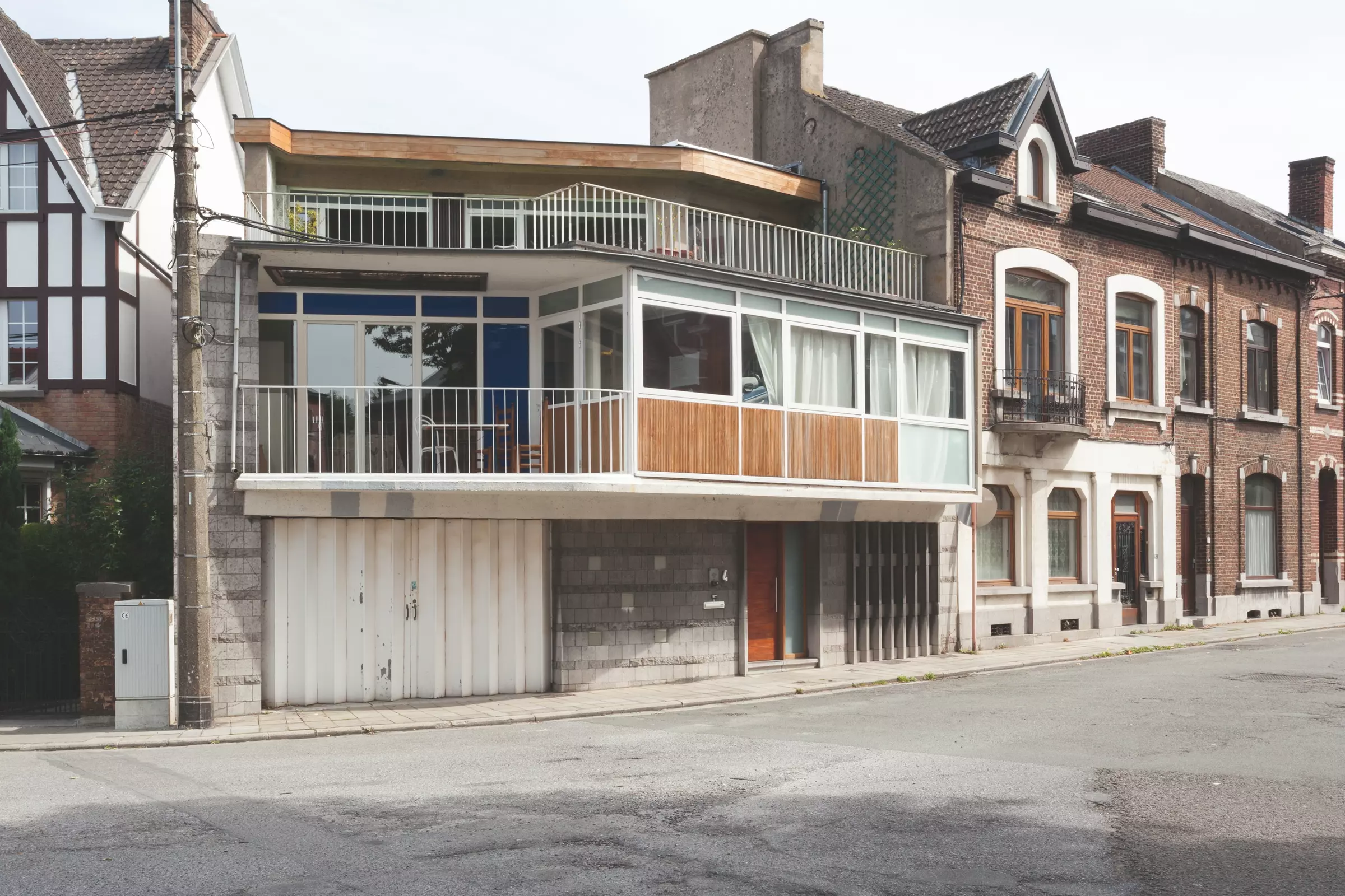 Comme bien souvent, quand il s'agit de construire sa propre habitation, l'architecte profite de l'occasion pour témoigner de ses convictions architecturales. Implantée sur un terrain triangulaire à la configuration particulièrement complexe, la maison se développe sur trois niveaux et fait face à une petite place publique dominée par l'église Notre-Dame des Sept Douleurs.