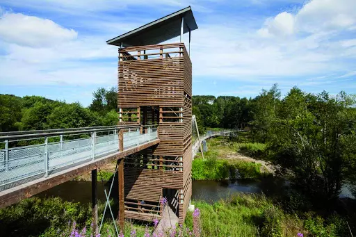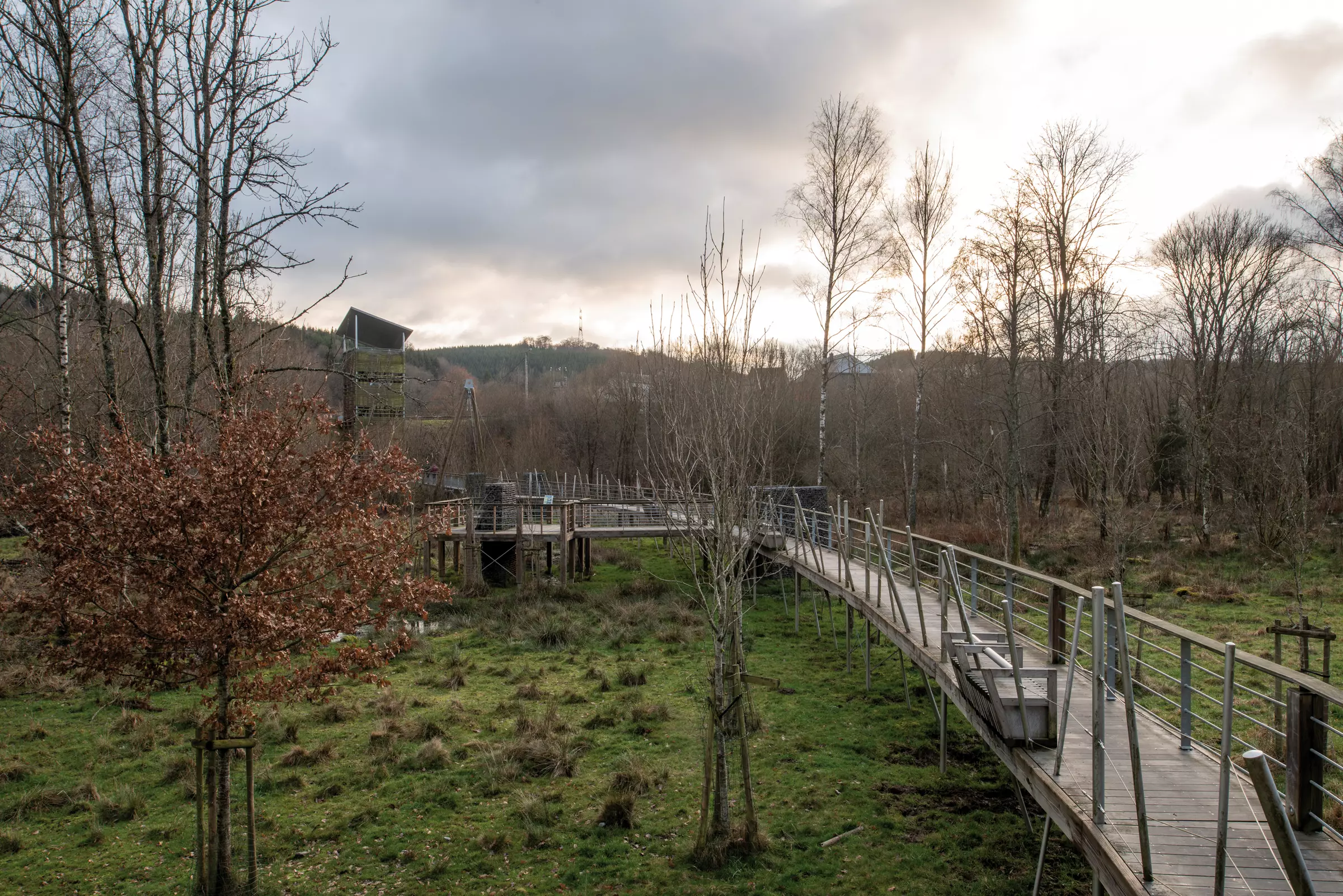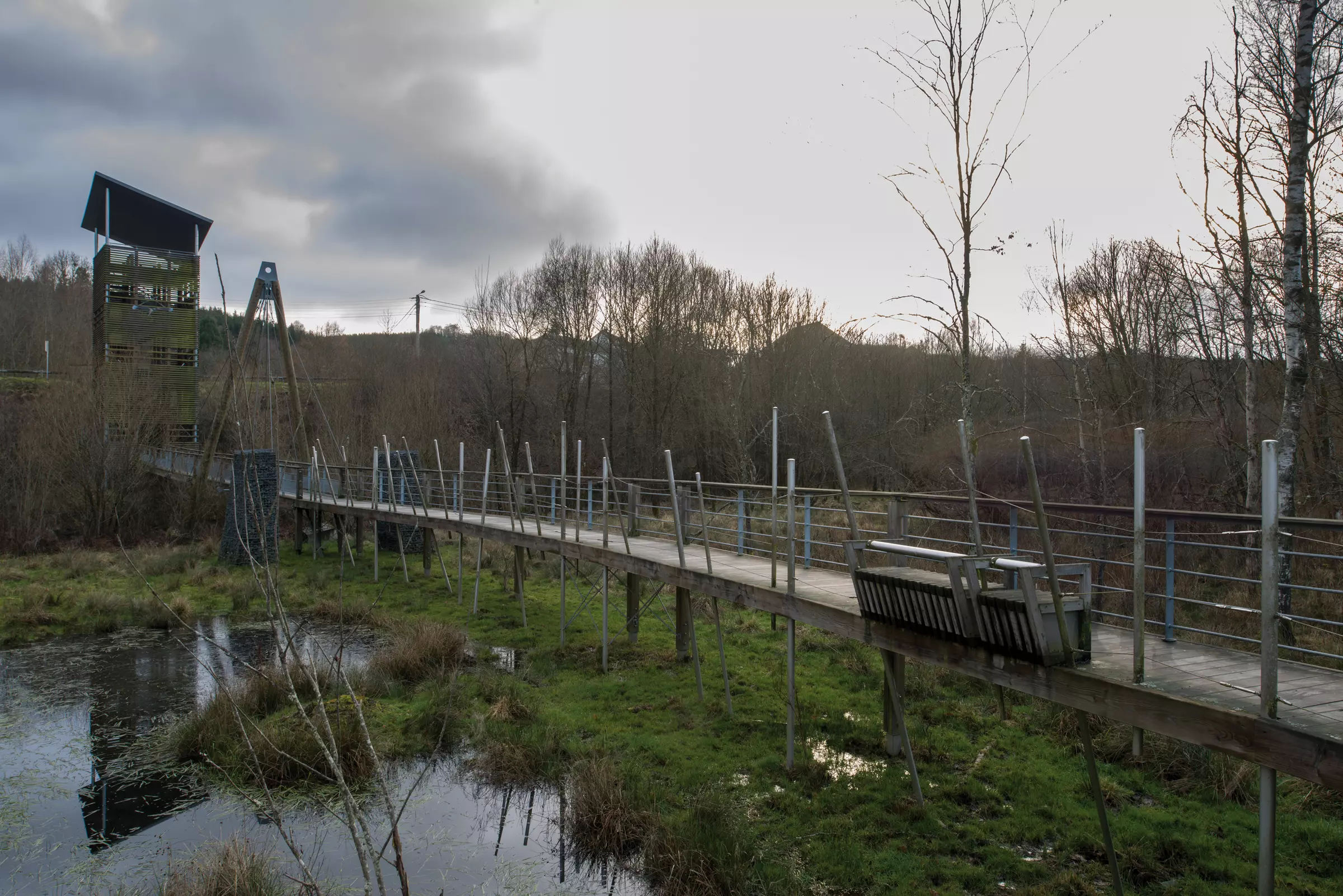 Le site du moulin donne accès à une passerelle destinée à rapprocher le quartier de la Tannerie de l'administration communale, séparés par la vallée de la Sûre. Suivant une large courbe, la passerelle en bois, acier et pierre, longue de 120 m, est construite sur pilotis afin d'éviter les éventuelles crues de la rivière. Franchissant celle-ci au moyen d'un pont haubané, le parcours est ponctué d'une aire de repos, d'un promontoire et d'un belvédère. Ce dernier, d'une hauteur de 17 m, rattrape le fort dénivelé existant entre les deux rives de la Sûre et permet de rejoindre à un premier niveau le quartier de la Tannerie. Le niveau supérieur de la tour, chapeauté par des panneaux solaires fournissant l'énergie nécessaire à l'éclairage de la promenade, offre un vaste panorama sur le village et la vallée.