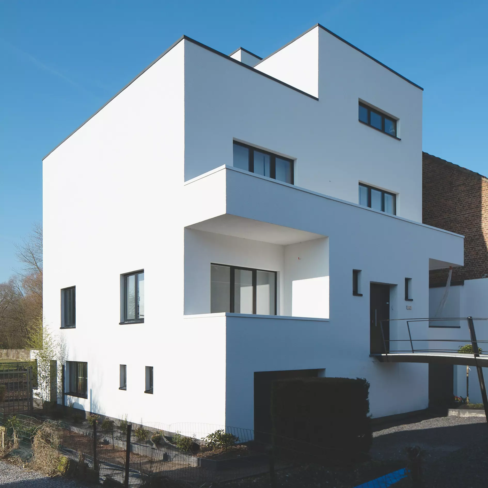 Considérée comme l'une des maisons modernes les plus caractéristiques de la région, l'habitation est proche de villas emblématiques de Marcel Leborgne (villas Bailleu et Genval à Loverval, 1928-1930) qui lui sont antérieures. Son auteur, Raoul Godefroid, est architecte, sculpteur et enseignant. Il reprend ici – visiblement inspiré par le mouvement De Stijl aux Pays-Bas, rapprochant arts plastiques et architecture – les éléments fondamentaux du Mouvement moderne (enduit blanc en façades, fenêtres en bandeau, toits-terrasses, porte-à-faux) dans une composition déployant toute sa plasticité sur les quatre côtés de la maison.