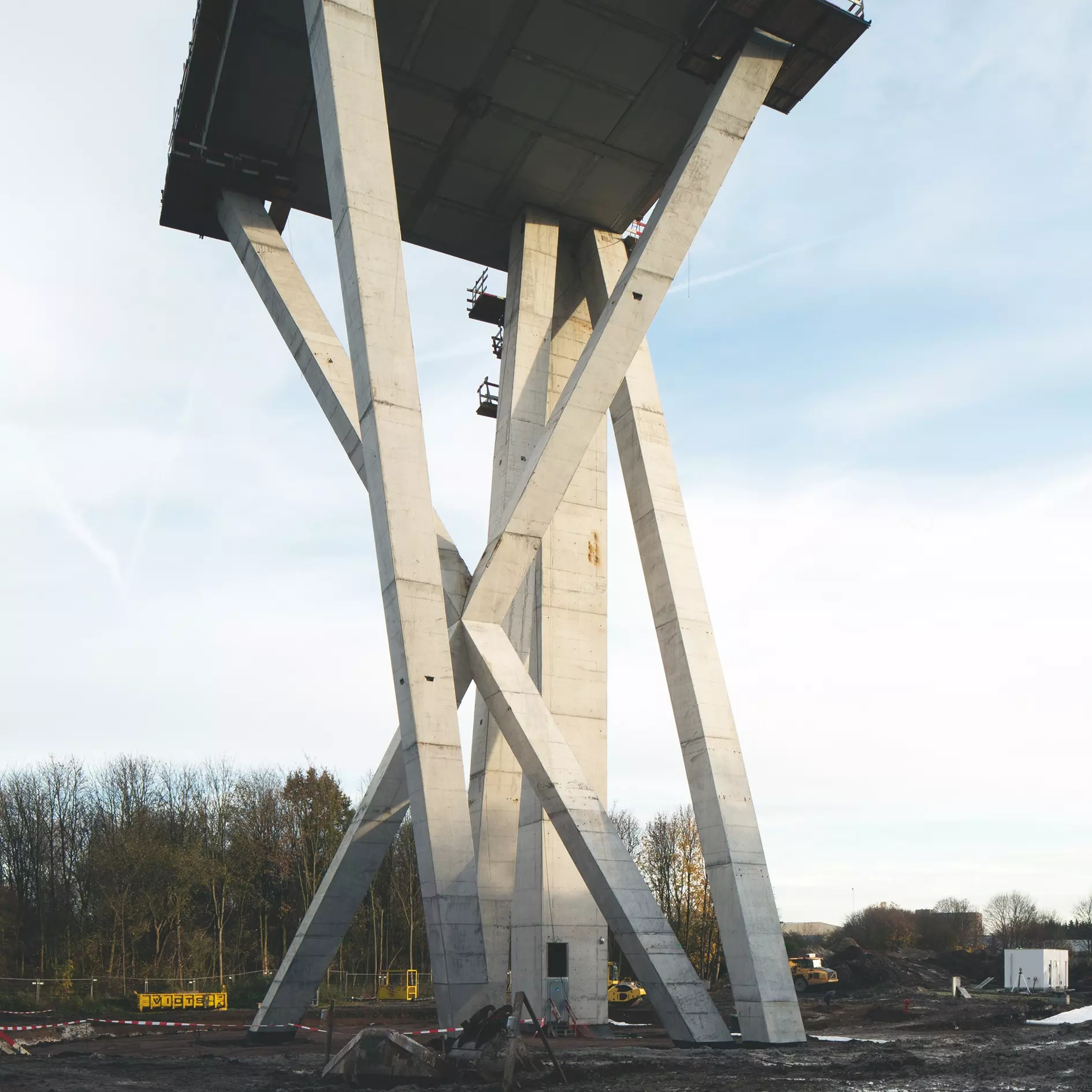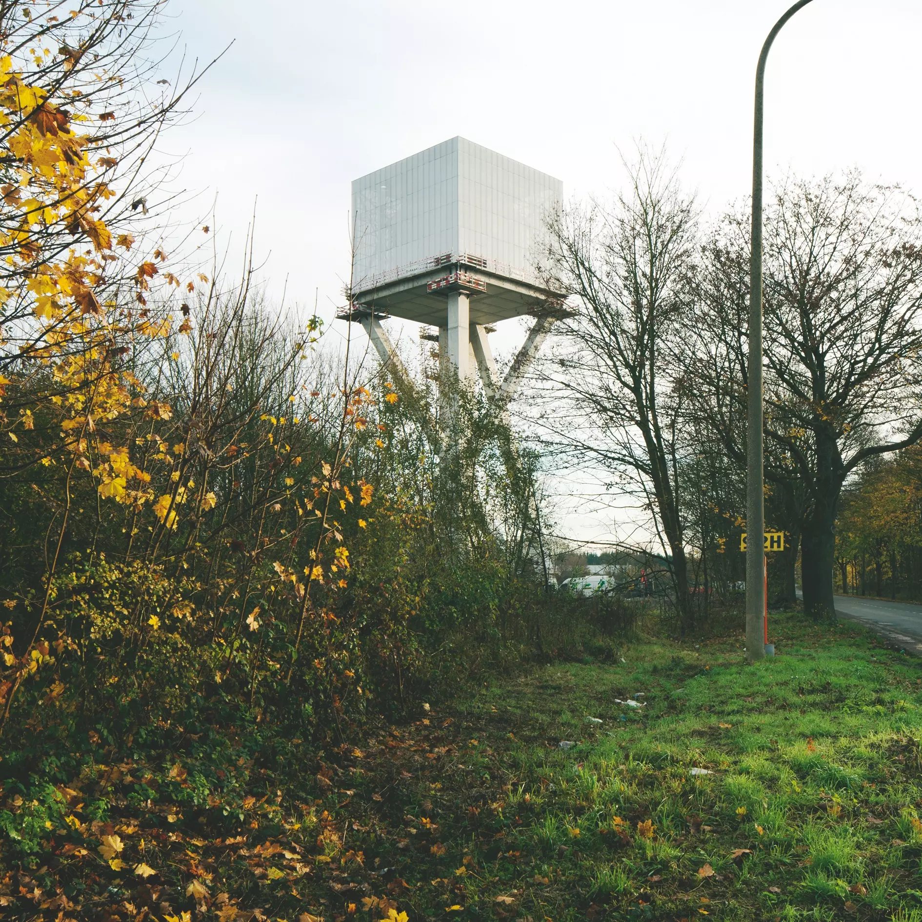 Le château d'eau est traité en métaphore de la vie quotidienne : une table sur tréteaux, sur laquelle on dépose une cruche d'eau. La référence est d'autant plus marquante que, dans sa traduction à l'échelle du territoire, elle nous offre une variété inépuisable de perceptions différentes et une interaction constante avec son milieu. La déformation des colonnes de soutien multiplie la variété des points de vue ; elle s'inscrit dans la complexité du contexte naturel et bâti en refusant la banalisation de son rôle. La reprise des seules charges verticales, développée en complicité avec les ingénieurs du bureau d'études Greisch, se fait essentiellement dans les quatre extrémités supérieures respectives des colonnes en X et en V. La colonne verticale, unique, contient l'escalier d'accès à la plate-forme. La cuve de 2 000 m² n'est pas considérée comme la prolongation naturelle et massive des pieds, comme c'est souvent le cas, mais bien comme un élément posé sur un support.