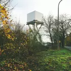 Détachée de ces contingences strictement fonctionnelles, la plate-forme offre alors une flexibilité étonnante dans la reconversion possible du château d'eau. Enfin, positionné en retrait, le réservoir permet de poser sur le périmètre du plateau une façade légère, résille en métal déployée, qui, par sa transparence, renforce le parti pris premier des architectes, celui d'une superposition d'éléments.