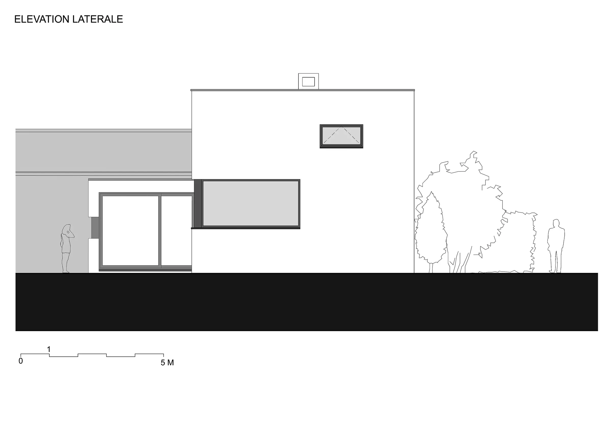 Conçue à partir d'une forme parallélépipédique, articulée en demi-niveaux pour gagner un maximum de surface à l'intérieur, cette construction s'ouvre vers le jardin arrière au moyen d'une annexe qui rappelle la typologie des habitations ouvrières.