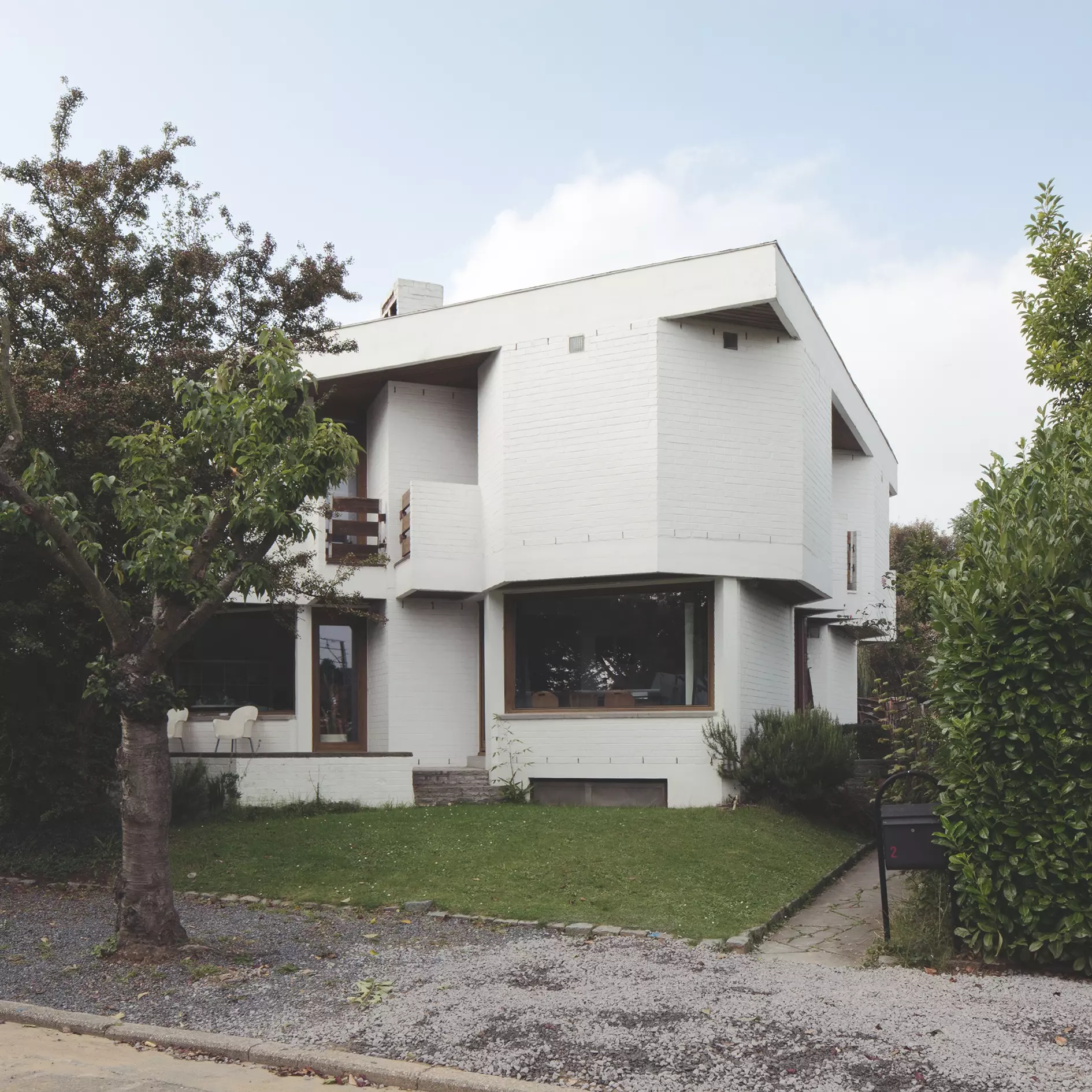 Pour s'adapter à la forme triangulaire de ce terrain exigu, en bout d'impasse, André Godart conçoit par mimétisme un plan de même forme, rompant avec la typologie traditionnelle des habitations avoisinantes. L'originalité de sa démarche tient à l'agencement spatial de ce polyèdre, définissant d'abord les pièces de vie, de nuit, et les zones de distribution, pour ensuite sculpter une volumétrie brute en usant de renfoncements et d'encorbellements.