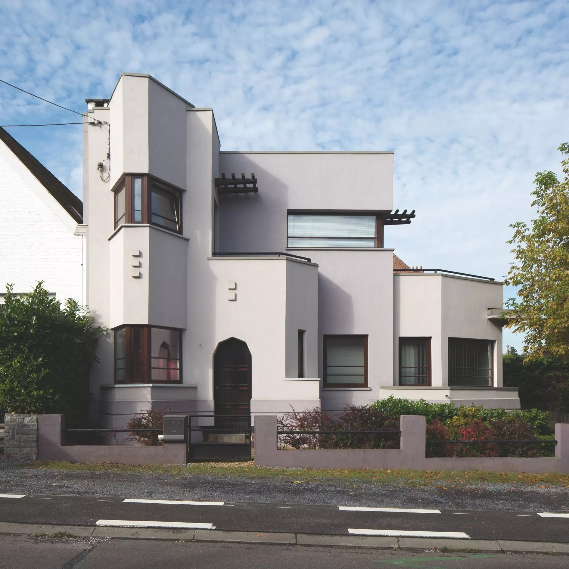 L'architecte Émile Maes se montre à l'aise dans la réinterprétation des grandes caractéristiques de l'architecture moderne telle qu'elle se construit alors en Belgique et à l'étranger, ici dans une composition maîtrisée aux volumes unifiés par un enduit blanc, proche de la production de l'architecte carolorégien Marcel Leborgne et, à quelques mètres de là, au numéro 26, dans une habitation (1938) qui trahit l'assimilation inspirée des codes stylistiques de l'architecture moderne diffusée depuis les Pays-Bas. La mitoyenneté de cette maison est le résultat d'une réglementation communale de l'époque, qui impose des maisons jumelées avec une zone d'accès latéral vers le fond de parcelle.
