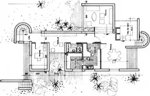 Un axe horizontal distribue les différentes fonctions, séparant, par l'intermédiaire d'un patio, un bureau professionnel du reste de l'habitation. Tout en jouant avec de légères différences de niveau, le living, le coin feu, la salle à manger et la cuisine s'articulent et profitent des différentes vues, orientations et terrasses.