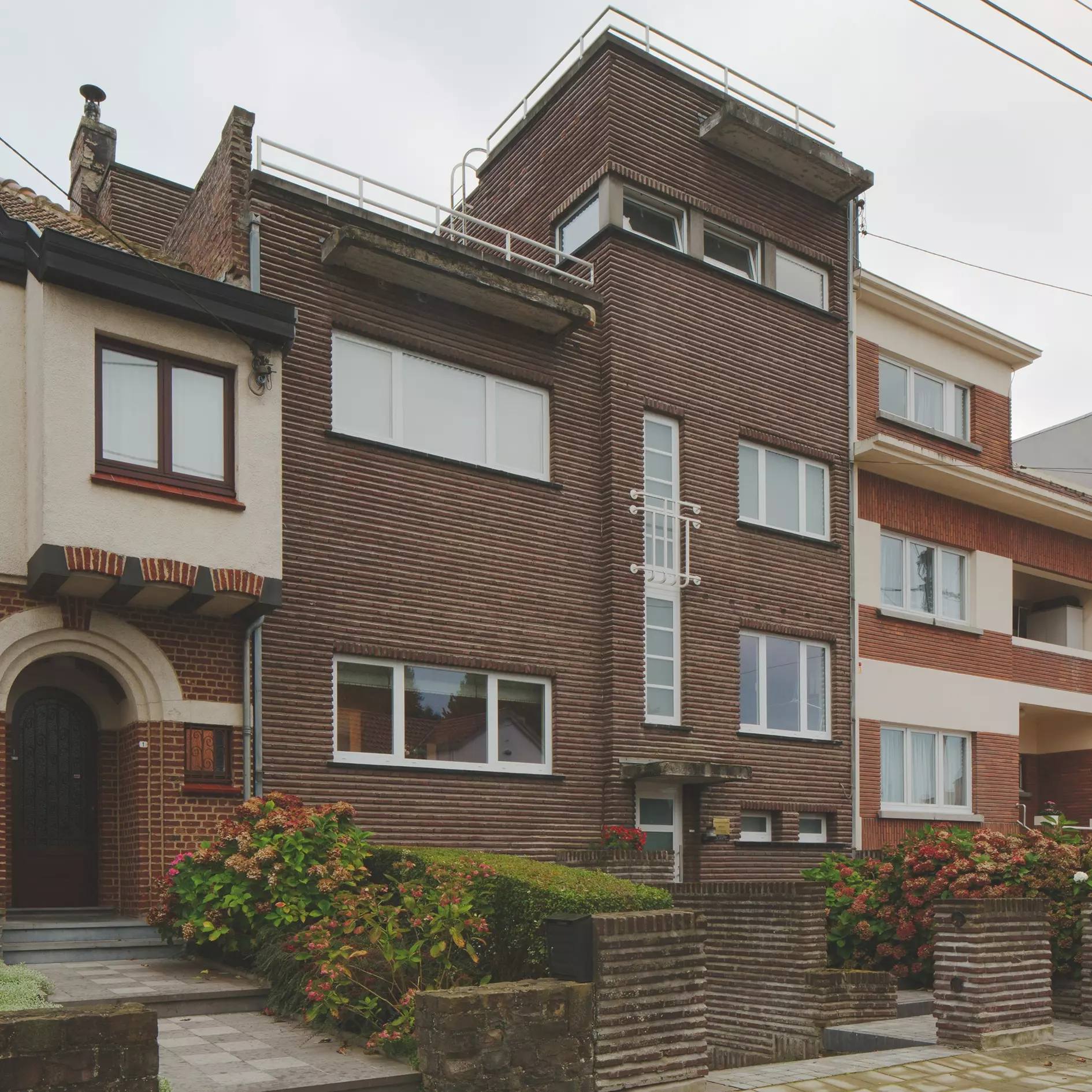 La construction mitoyenne, sobre et élancée, est exemplaire de l'architecture moderne des années 1930, influencée par l'École d'Amsterdam. Le volume, conçu en deux travées décalées en hauteur et en plan, est coiffé d'une toiture plate.