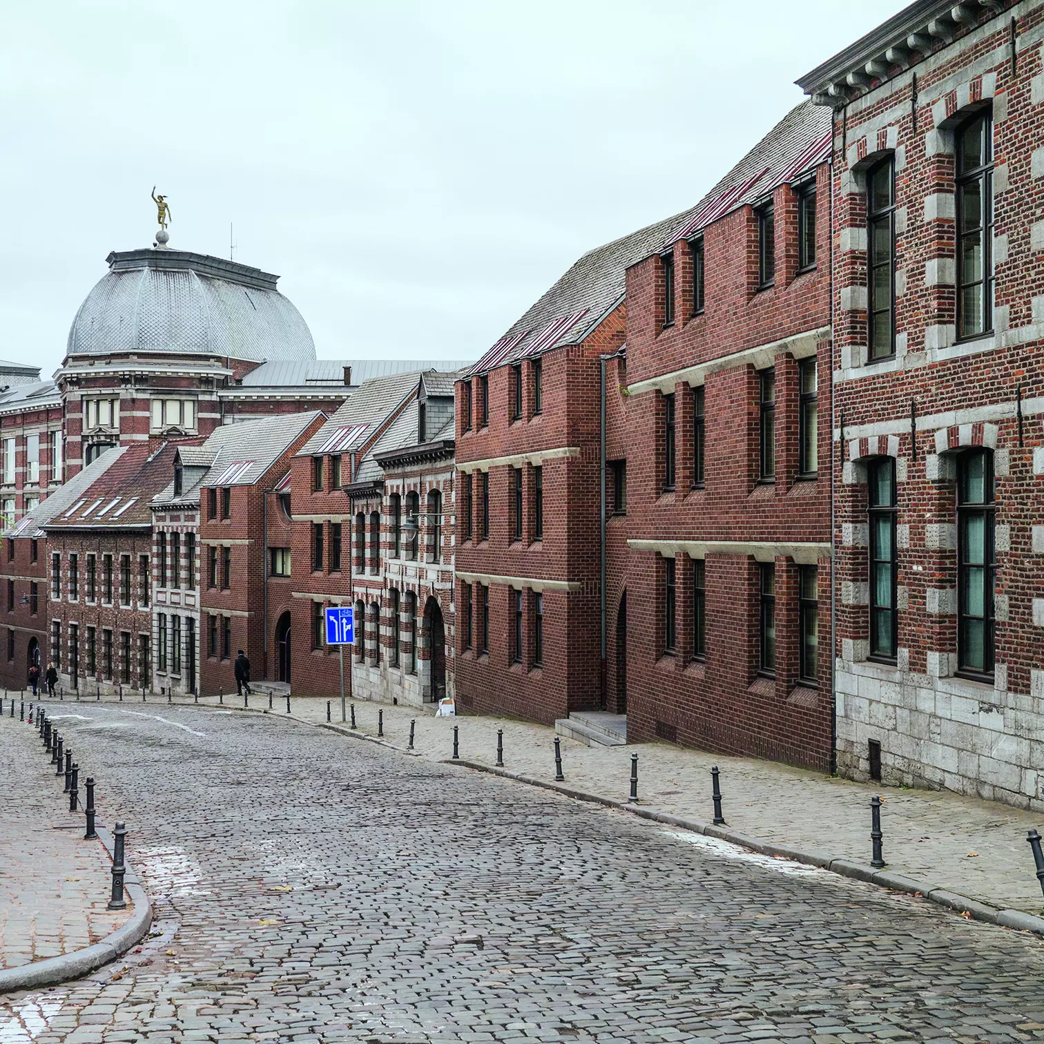 L'ensemble de logements pour étudiants de l'Université de Mons s'inscrit dans le courant de l'architecture contextuelle.