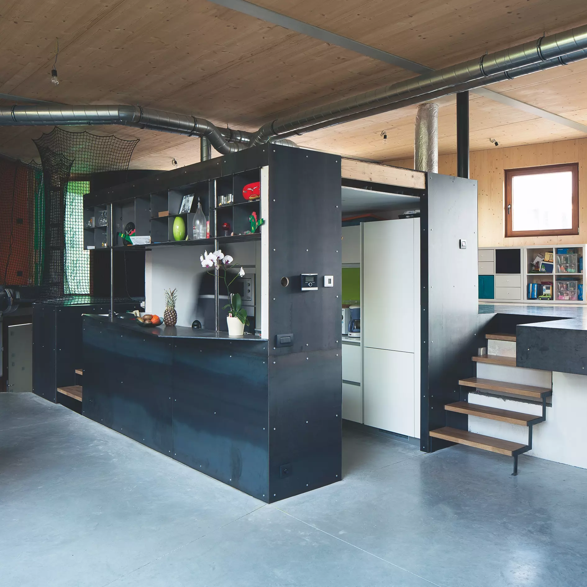 Des modules préfabriqués en bois ont été développés en collaboration avec l'entreprise Stabilame, permettant de garantir la rapidité et la précision de la mise en œuvre, tout en simplifiant la pose des techniques spéciales (électricité, chauffage, ventilation ).