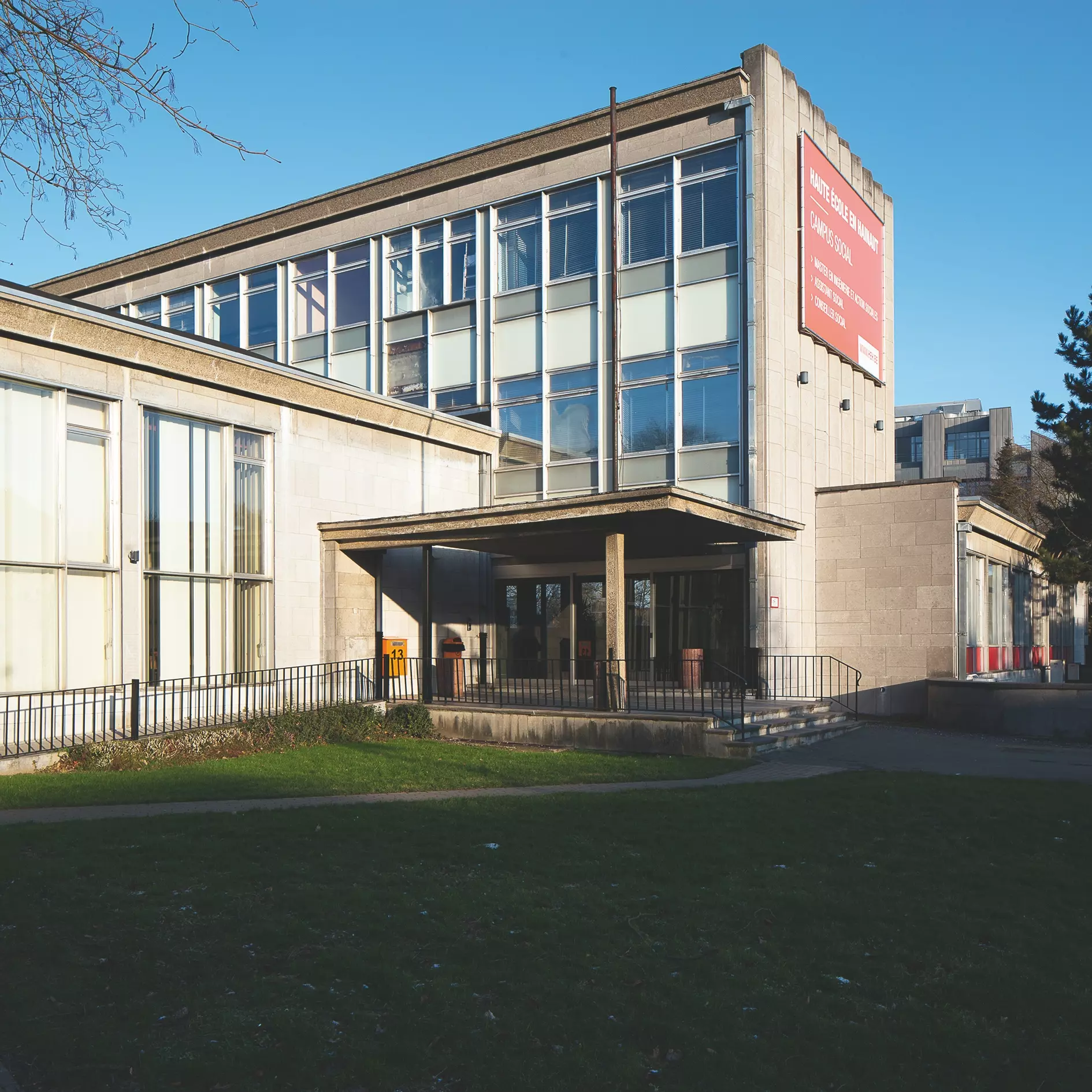 À sa fondation (1947), l'école est installée au sein de l'école communale De Brouckère à Quaregnon. La direction déménage après la création de l'École catholique de service social (ISSHA) à Mons.