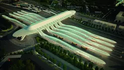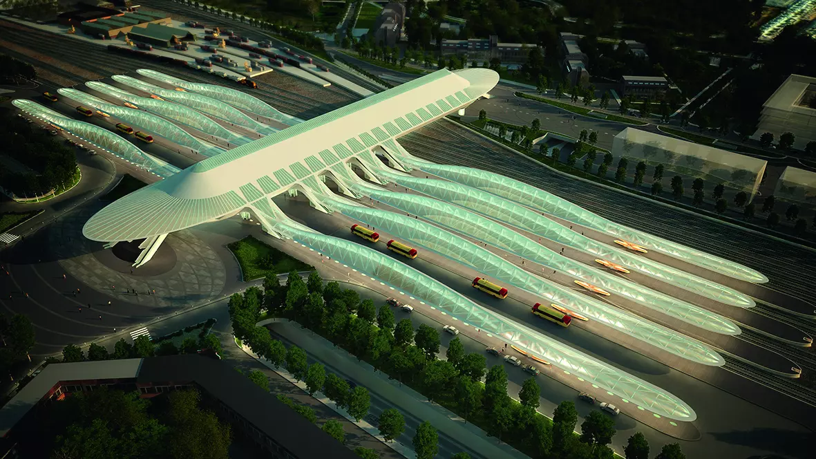 À l'origine prévoyant une simple passerelle de jonction entre la gare existante et les Grands Prés, le projet mue en une redéfinition complète du site ferroviaire. La passerelle, telle une rue couverte, reste l'élément fort du nouveau projet développé par le lauréat Santiago Calatrava, autour duquel s'articulent symétriquement les cinq quais, dont un est commun aux trains et aux bus, et un autre aux bus et aux voitures (dépose-minute et taxis).