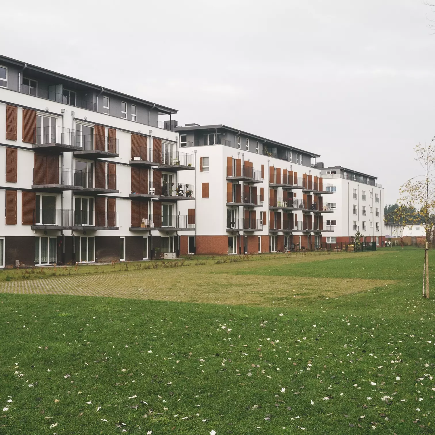Si les logements sont situés dans un vaste parc, les espaces dont jouissent les habitants n'offrent cependant guère de différenciation, au service de l'intimité par exemple.